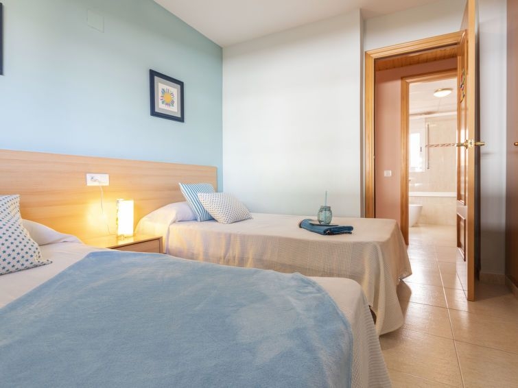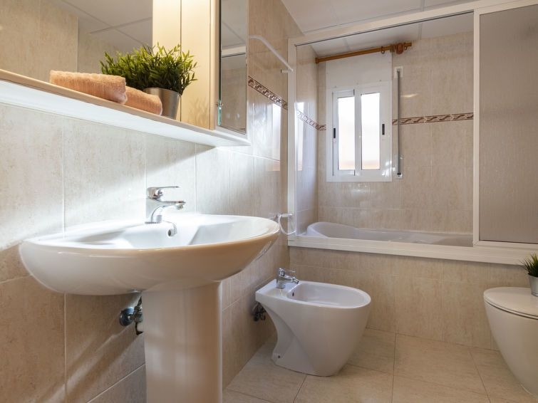Lorena: Casa "Lorena", moderna, bonita, agradable. En el distrito Delta del Ebro, lugar tranquilo area residencial (villas), a 350 m del mar, a 300 m de la playa. Privado: terreno (vallada), plantas, piscina en forma de riñon (7 x 3 m, 100 - 160 cm de profundidad, Disponible por temporada: 01.Mar. - 30.Oct.). Terraza, muebles de jardín, barbacoa. En el inmueble: acceso a internet, Wifi, solarium, aire acondicionado, lavadora. Aparcamiento en el mismo terreno, posibilidad de aparcamiento 1 m en la calle. Supermercado, restaurante, bar, panadería 800 m, playa de arena 300 m. Puerto deportivo 2 km, campo de golf (18 hoyos) 15 km, escuela de vela 300 m. Atracciones en los alrededores: Port Aventura 65 km, Parque natural del Delta.