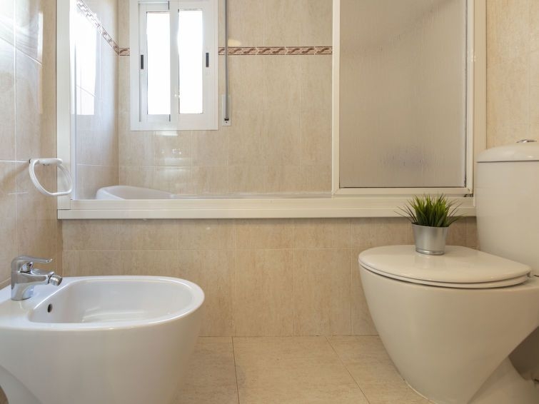 "Lorena", villa 4 estancias 120 m2. Con mobiliario moderno y de buen gusto: salón-comedor con mesa de comedor, TV satélite y canales internacionales (pantalla plana), calefacción eléctrica. Salida a la terraza-jardín. 2 dorm., cada habitación con 1 cama de matrimonio (135 cm). 1 dorm. doble con 2 camas (90 cm). Cocina abierta (horno, lavavajillas, 1 placas de vitrocerámica, microondas, congelador, cafetera eléctrica). Baño/bidet/WC, ducha/WC. Calefacción eléctrica. Muebles de terraza, barbacoa, tumbonas. El alojamiento dispone de: lavadora, plancha, secador de pelo. Internet (Wifi, gratis). Plaza de aparcamiento. 2 mascotas / perros. HUTTE001162