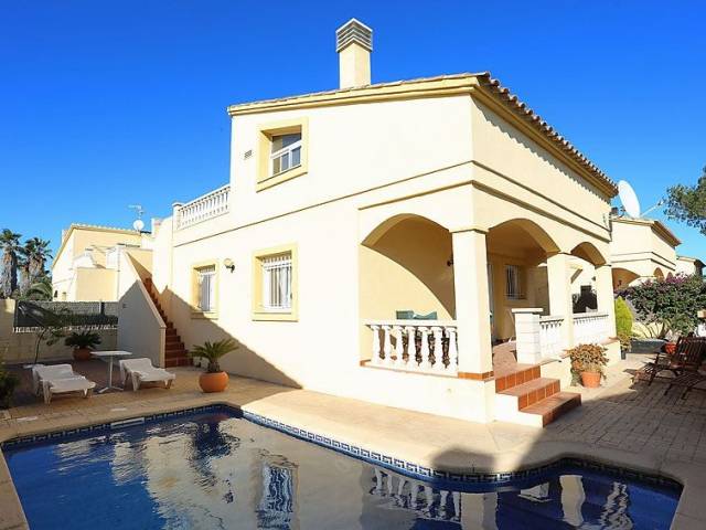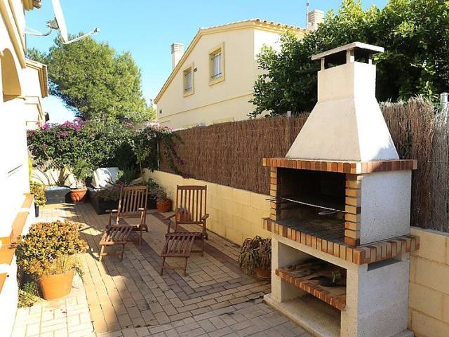 Riumar a 10 km de Deltebre: Casa "Sally", moderna, bonita de 2 plantas. Lugar tranquilo, a 150 m del mar, a 150 m de la playa. Privado: terreno (vallada) con plantas, piscina rectangular (Disponible por temporada: 01.Ene. - 31.Dic.) con escalera interior. Ducha exterior, porche, barbacoa, aparcamiento junto a la casa. Tienda, tienda de comestibles, restaurante, bar 300 m. Grupos de jóvenes sólo bajo petición.