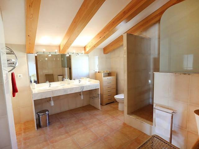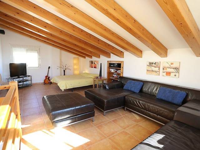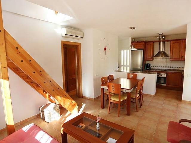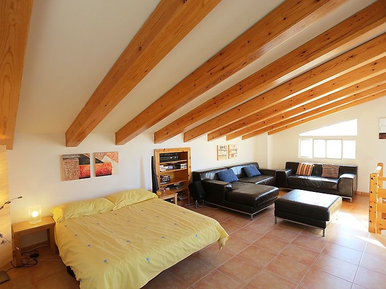 "SALLY", casa 5 estancias. Con mobiliario confortable y bonito: salón-comedor con mesa de comedor. Salida a la terraza-jardín. 1 dorm. con 1 cama de matrimonio. 1 dorm. con 2 camas. 1 dorm. con 1 cama-nido (2 pers.). Cocina abierta (4 fogones, horno, lavavajillas, microondas, congelador, cafetera eléctrica). Baño/WC, ducha/WC. Aire acondicionado, aire caliente. Planta superior: salón-dormitorio con 1 cama de matrimonio, ducha/WC, TV satélite y aire acondicionado. Salida a la terraza. Muebles de terraza, barbacoa, tumbonas, porche. El alojamiento dispone de: lavadora. Internet (Wifi, gratis). Plaza de aparcamiento junto a la casa. Adecuado para familias. 2 mascotas / perros. HUTTE001441