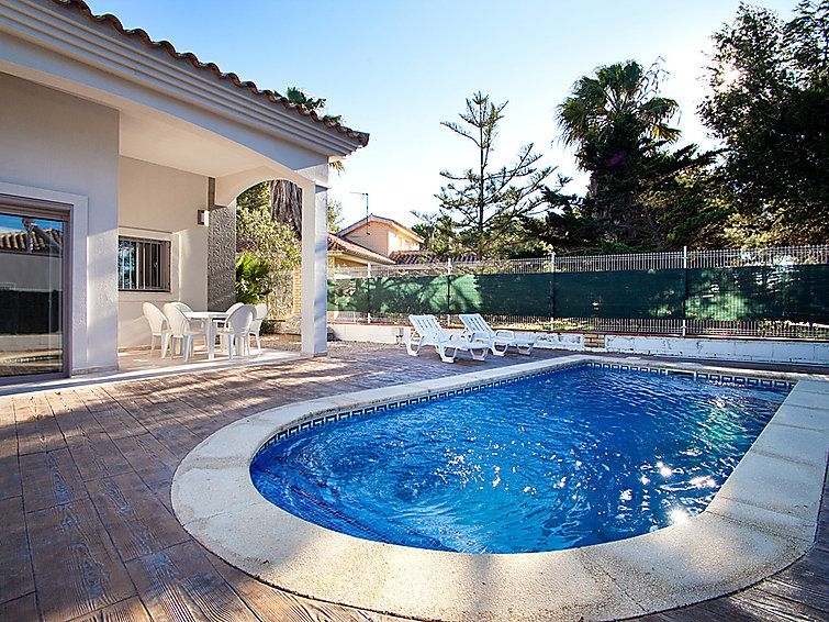Riumar a 10 km de Deltebre: Casa "Gaviota 15", moderna, bonita del año 2009. Lugar tranquilo, soleado, a 350 m del mar, a 350 m de la playa. Privado: terreno (vallada), piscina rectangular (7 x 3 m, 1 - 90 cm de profundidad, Disponible por temporada: 01.Ene. - 31.Dic.) con escalera interior. Ducha exterior, porche, aparcamiento junto a la casa. Tienda, tienda de comestibles, restaurante, bar 300 m. "GAVIOTA 15", casa adosada 4 estancias 89 m2, en la planta baja. Con mobiliario confortable y bonito: salón-comedor con mesa de comedor, TV digital y aire acondicionado. Salida a la terraza-jardín, a la piscina. 1 dorm. con 1 cama de matrimonio (135 cm), ducha/WC. 2 dorm., cada habitación con 2 camas (90 cm). Cocina (horno, 4 placas de vitrocerámica, tostadora, microondas, congelador, cafetera eléctrica). Baño/bidet/WC. Aire acondicionado, aire caliente. Muebles de terraza, barbacoa, tumbonas (2), porche. El alojamiento dispone de: lavadora. Internet (Wifi, gratis). Plaza de aparcamiento junto a la casa. Adecuado para familias. 2 mascotas / perros. HUTTE000933