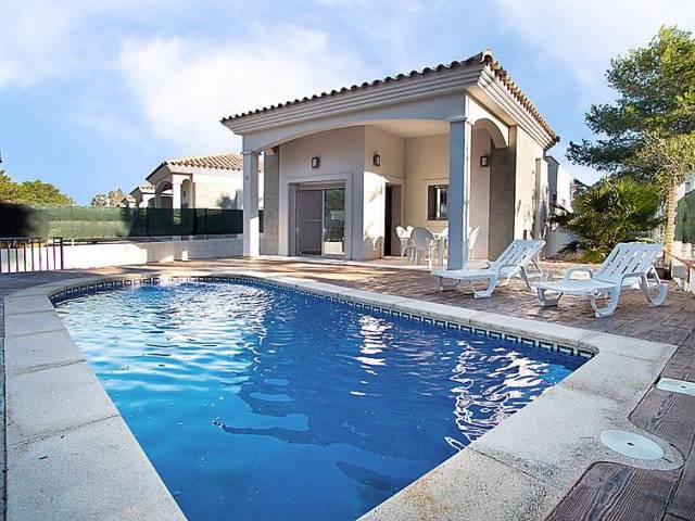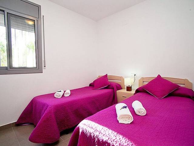 "GAVIOTA 3", casa adosada 4 estancias 89 m2, en la planta baja. Con mobiliario confortable y bonito: salón-comedor con mesa de comedor, TV digital y aire acondicionado. Salida a la terraza-jardín, a la piscina. 1 dorm. con 1 cama de matrimonio (135 cm), ducha/WC. 2 dorm., cada habitación con 2 camas (90 cm). Cocina (horno, 4 placas de vitrocerámica, tostadora, microondas, cafetera eléctrica). Ducha/WC. Aire acondicionado, aire caliente. Muebles de terraza, barbacoa, tumbonas (2), porche. El alojamiento dispone de: lavadora, plancha, mosquitera. Internet (Wifi, gratis). Plaza de aparcamiento junto a la casa. Adecuado para familias. 2 mascotas / perros. HUTTE000921