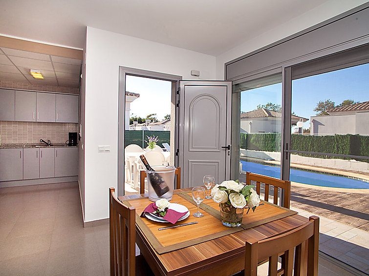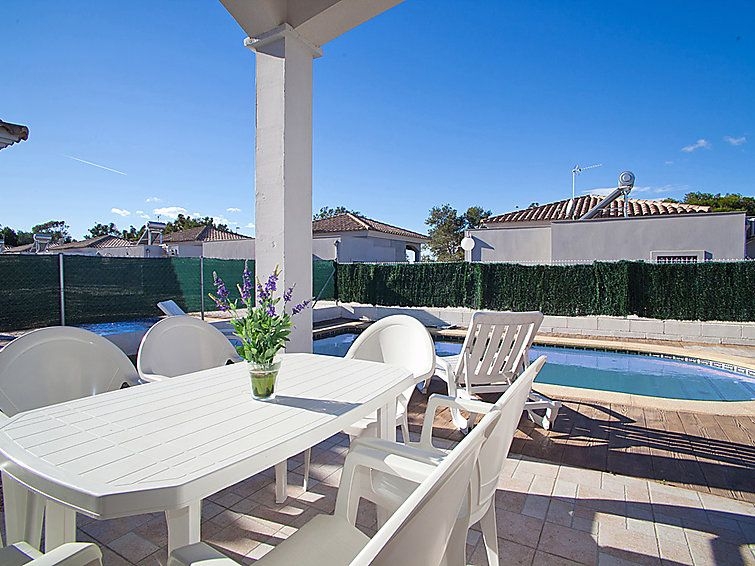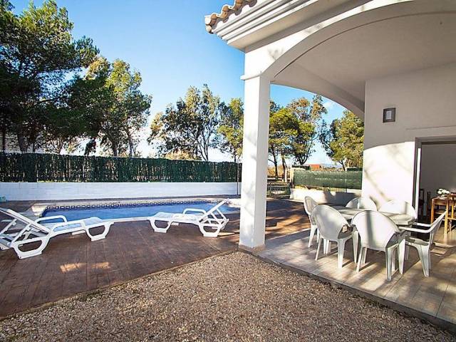 Riumar a 10 km de Deltebre: Casa "Gaviota 3", moderna, bonita del año 2009. Lugar tranquilo, soleado, a 350 m del mar, a 350 m de la playa. Privado: terreno (vallada), piscina rectangular (7 x 3 m, 1 - 90 cm de profundidad, Disponible por temporada: 01.Ene. - 31.Dic.) con escalera interior. Ducha exterior, porche, aparcamiento junto a la casa. Tienda, tienda de comestibles, restaurante, bar 300 m.