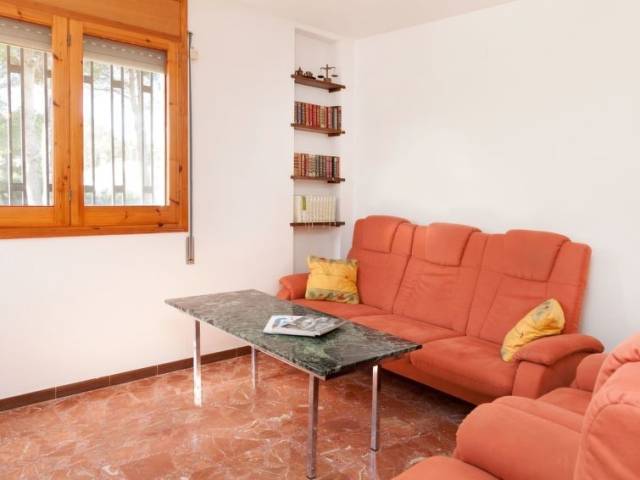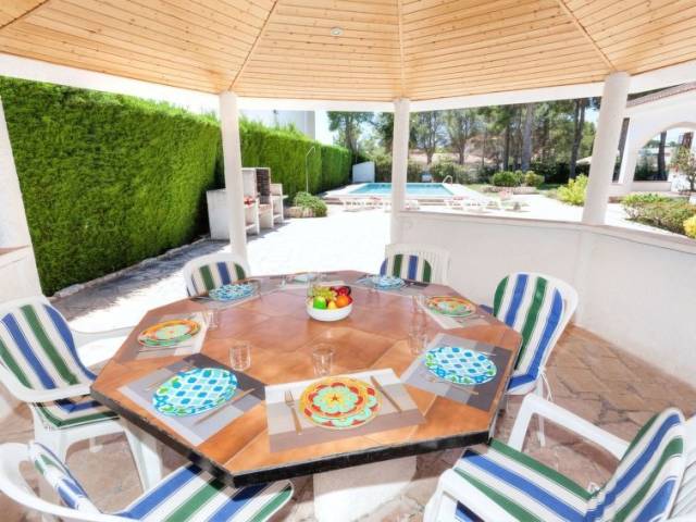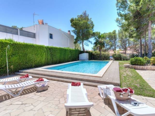 Urb. Tres Cales a 4 km de L'Ametlla de Mar: Caseta en el jardín con nevera, fregadero y cocina. Pérgola de obra con forma octogonal y mesa. La piscina no se puede iluminar. Villa "Villa Ute", agradable, confortable de 2 plantas. En las afueras de la localidad, a 4.8 km del centro de L'Ametlla de Mar, lugar soleado, a 1.1 km del mar, a 1.1 km de la playa. Privado: terreno 1'000 m2 (vallada), jardín con césped 300 m2 plantas, piscina (10 x 5 m, 80 - 190 cm de profundidad, Disponible por temporada: 01.Abr. - 31.Oct.). Ducha exterior, terraza (14 m2), muebles de jardín, barbacoa, mantenimiento de la piscina a través del propietario/jardinero. Acceso por escaleras (3 escalones) hasta la casa. Aparcamiento junto a la casa. Tienda de comestibles, supermercado, restaurante, bar 700 m, estación de tren 4.8 km. Atracciones en los alrededores: Parque Portaventura 48 km, parque Aquopolis 51 km, parque natura del Delta del Ebro 35 km, Tarragona 57 km, Reus 48 km, Barcelona 153 km. A tener en cuenta: coche recomendable. Grupos de jóvenes sólo bajo petición. "Villa Ute", villa 5 estancias 120 m2 en 2 plantas. Con mobiliario funcional y confortable: salón-comedor 20 m2, en 2 niveles con mesa de comedor y TV satélite. Salida a la terraza. 2 dorm., cada habitación con 2 camas (90 cm). 1 dorm. con 1 cama de matrimonio (150 cm). Cocina abierta (4 fogones, horno, tostadora, hervidor de agua eléctrico, cafetera eléctrica) con barra americana. Baño/WC. Ningún tipo de calefacción. Planta superior: 1 dorm. con ventanal con 1 cama de matrimonio (150 cm). Salida a la terraza. Ducha/WC, doble lavabo. Terraza 16 m2. Vista a la piscina y al jardín. El alojamiento dispone de: lavadora, plancha, cuna, secador de pelo. Internet (Wifi, gratis). Plaza de aparcamiento junto a la casa. A tener en cuenta: TV solamente DE, FR. HUTTE000791