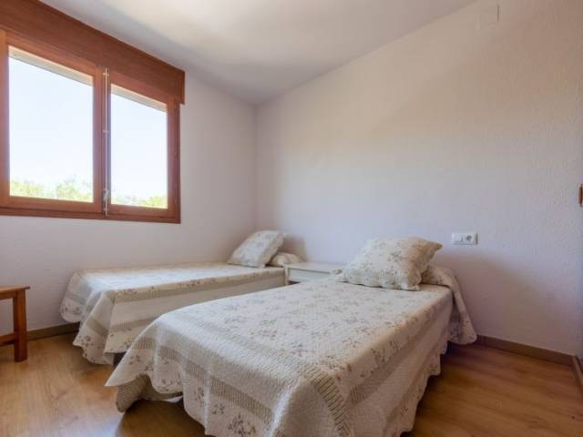 "Marqueses", casa 5 estancias 91 m2. Vivienda adecuada para 4 adultos + 4 niños. Con mobiliario funcional y agradable: salón-comedor con TV digital. Salida a la terraza-jardín. 1 dorm. con 1 cama de matrimonio (140 cm, 200 cm de longitud). 1 dorm. con 2 camas (90 cm, 190 cm de longitud). 1 dorm. con 2 camas (90 cm, 190 cm de longitud). 1 dorm. con 1 cama de matrimonio (140 cm, 190 cm de longitud). Cocina (horno, lavavajillas, 3 placas de vitrocerámica, tostadora, microondas, cafetera eléctrica, Cápsulas de café (Dolce Gusta) extra). Ducha/WC. Ningún tipo de calefacción. Terraza-jardín grande. Muebles de terraza, barbacoa, tumbonas (4). Vista al jardín. El alojamiento dispone de: lavadora, trona, cuna hasta 2 años, secador de pelo. Internet (Wifi, gratis). A tener en cuenta: adecuado para familias. Casa para no fumadores. 1 mascota / perro. TV solamente ES. La piscina descrita es de uso privado. HUTT-066789