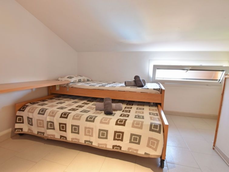 "Llaberia", casa adosada 4 estancias 111 m2. Vivienda adecuada para 4 adultos + 4 niños. Con mobiliario funcional y confortable: salón-comedor con TV digital y aire acondicionado. Salida a la terraza. Cocina (horno, lavavajillas, 3 placas de vitrocerámica, tostadora, hervidor de agua eléctrico, microondas, cafetera eléctrica). WC separado. Ningún tipo de calefacción. En planta inferior: con ducha/WC. Planta superior: 1 dorm. doble con 1 cama de matrimonio (140 cm, 190 cm de longitud). 1 dorm. con 1 sofá-cama doble (130 cm, 190 cm de longitud) con aire acondicionado. Ducha/WC. Ningún tipo de calefacción. Planta superior 2: abuhardillado 1 dorm. con 2 camas (90 cm, 190 cm de longitud), 1 cama de matrimonio (135 cm, 190 cm de longitud), aire acondicionado. Terraza. Muebles de terraza, barbacoa. Vista parcial a la piscina. El alojamiento dispone de: lavadora, plancha, trona, cuna hasta 2 años, secador de pelo. Internet (Wifi, gratis). Garaje en el mismo terreno (1 coche). A tener en cuenta: casa para no fumadores, aparcamiento para coches pequeños. HUTT011315