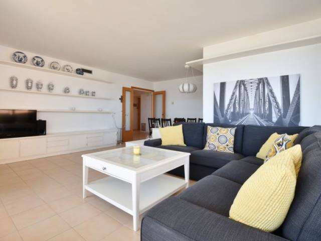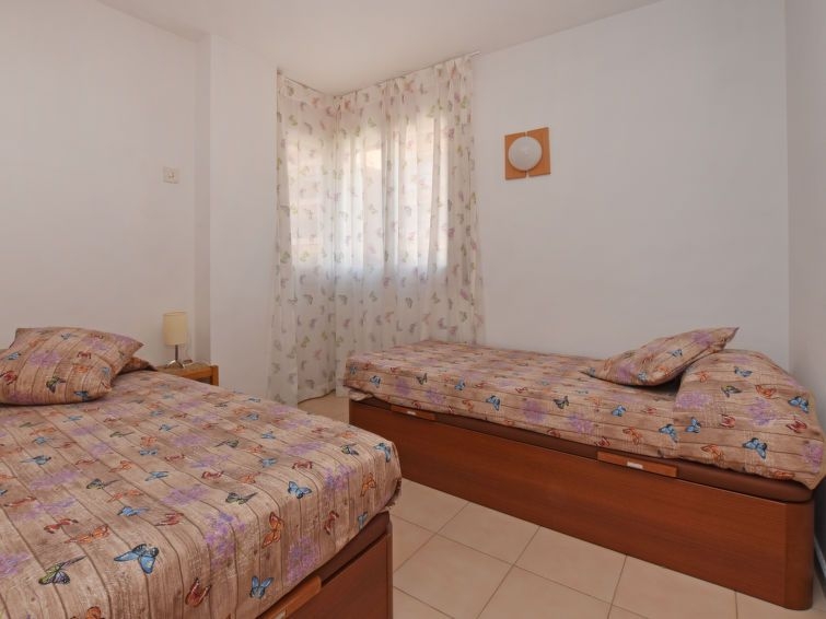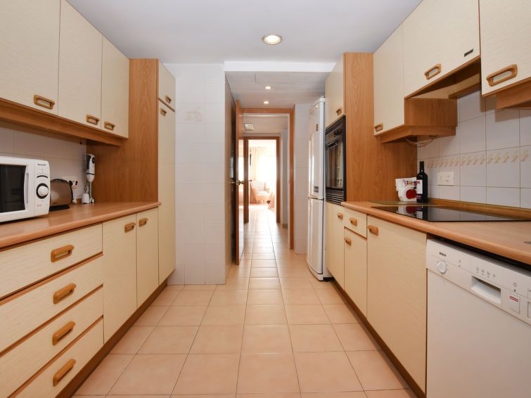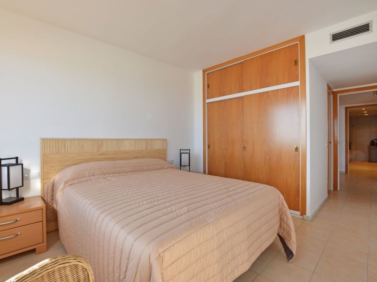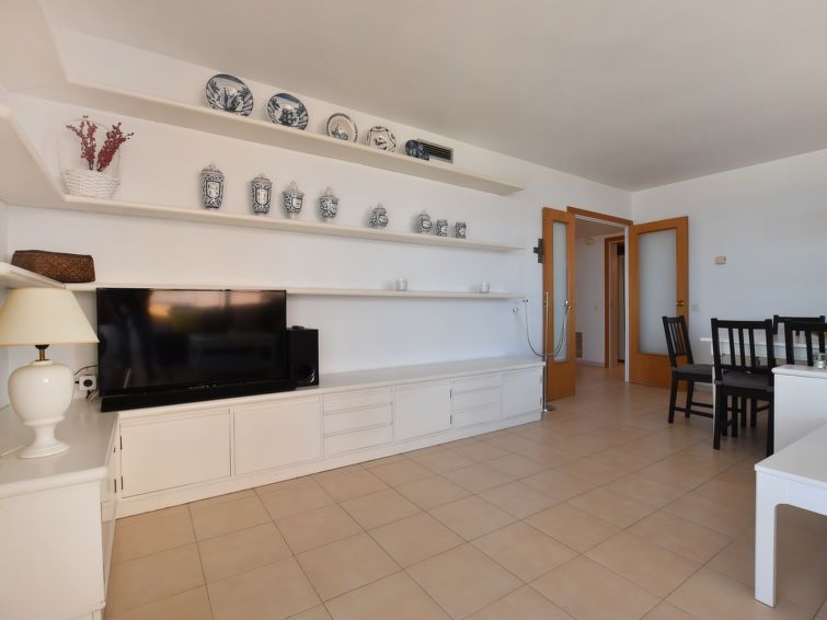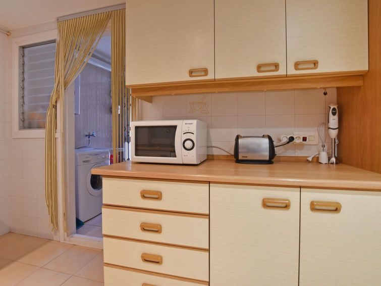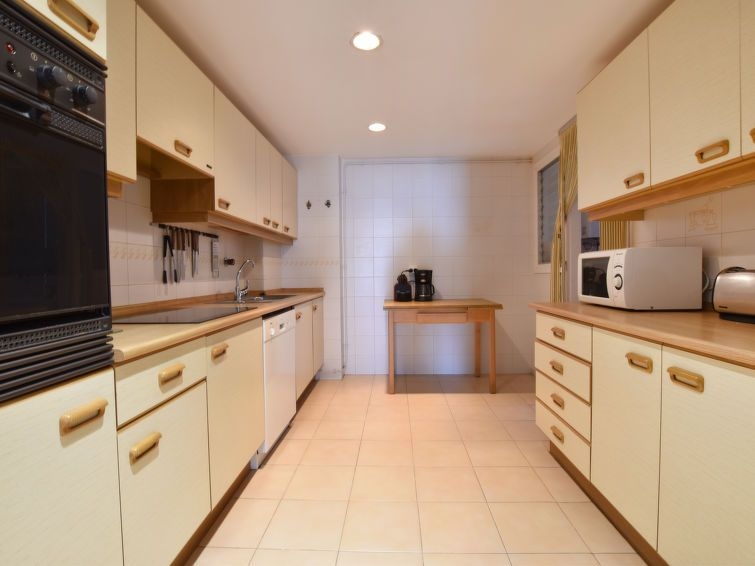 "Els Pins Rafa", apartamento de 5 estancias 108 m2 en el 2° piso. Vivienda adecuada para 4 adultos + 4 niños. Espacioso y luminoso, con mobiliario confortable y bonito: salón-comedor con TV digital. Salida a la terraza. 1 dorm. con 1 cama de matrimonio (150 cm, 190 cm de longitud), ducha/WC. 2 dorm., cada habitación con 2 camas (90 cm, 190 cm de longitud). 1 dorm. para niños con 1 x 2 literas (70 cm, 180 cm de longitud). Cocina (4 fogones, horno, lavavajillas, tostadora, hervidor de agua eléctrico, microondas, cafetera eléctrica). Baño/WC. Aire acondicionado. Ningún tipo de calefacción. Terraza. Muebles de terraza. Vista espléndida al mar. El alojamiento dispone de: lavadora, plancha, trona, cuna hasta 2 años, secador de pelo. Internet (Wifi, gratis). Plaza de aparcamiento n. 13 (1 coche) junto a la casa. A tener en cuenta: adecuado para familias. Apartamento para no fumadores. 1 mascota / perro. HUTT038910