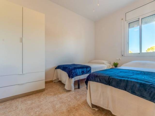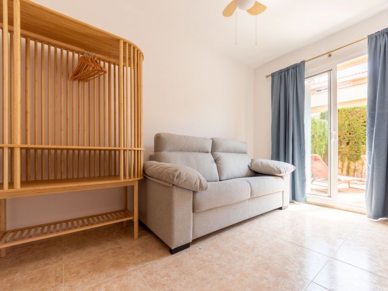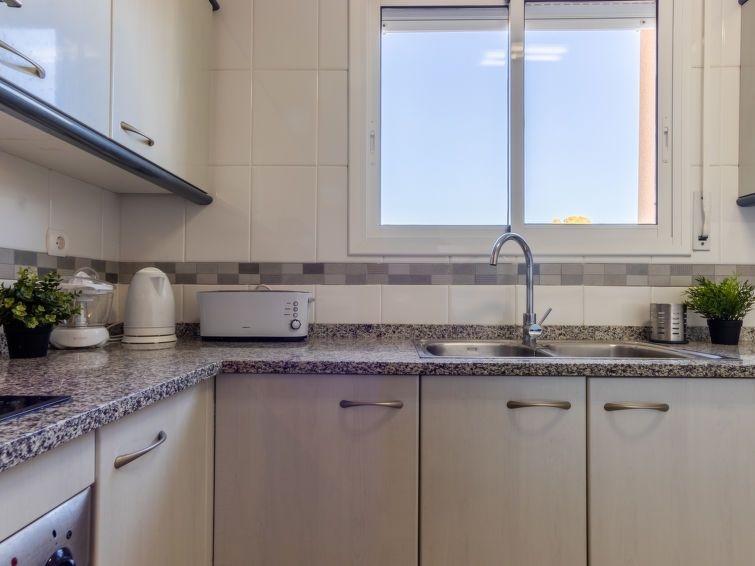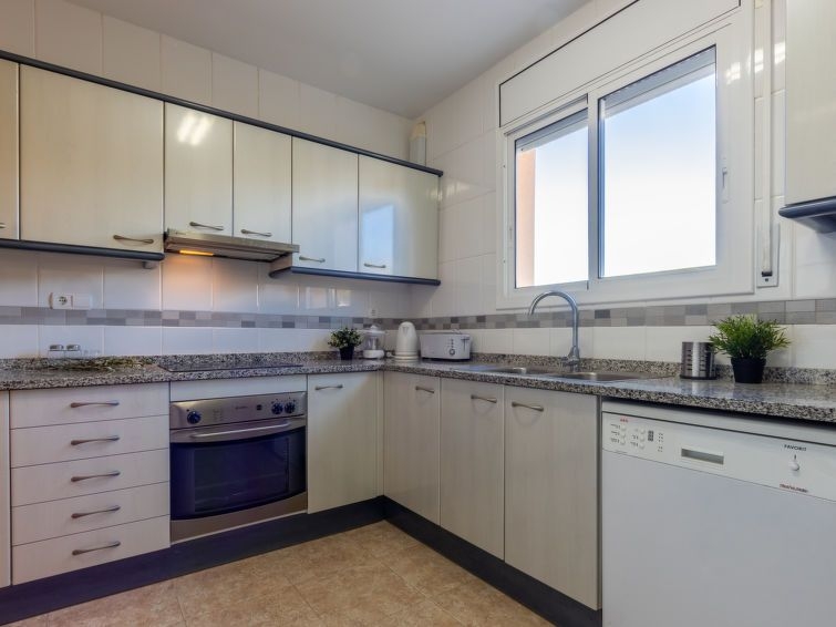 "Cancion de mar", casa adosada 4 estancias 98 m2 en 3 plantas. Vivienda adecuada para 4 adultos + 4 niños. Espacioso, con mobiliario funcional y confortable: 1 dorm. con 1 sofá-cama doble (1 x 140 cm, 190 cm de longitud). Baño/WC. Planta superior: salón-comedor con TV digital. Salida a la terraza. Cocina (3 placas de vitrocerámica, tostadora, hervidor de agua eléctrico, microondas, cafetera eléctrica). WC separado. Calefacción eléctrica. Planta superior 2: 1 dorm. con 1 cama de matrimonio (1 x 150 cm, 190 cm de longitud). 1 dorm. con 2 camas (90 cm, 190 cm de longitud). 1 dorm. con 2 camas (80 cm, 190 cm de longitud). Baño/WC. Terraza-jardín pequeña. Vista lateral al mar. El alojamiento dispone de: lavadora, plancha, secador de pelo. Internet (Wifi, gratis). Plaza de aparcamiento. A tener en cuenta: adecuado para familias. Casa para no fumadores. TV solamente ES. HUTT-067114