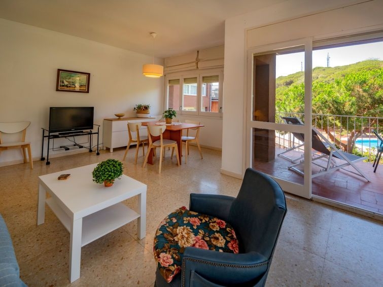 Casa de apartamentos confortable. Excelente situación: muy céntrica pero tranquila, a 950 m del mar, a 950 m de la playa. Comunitario: terreno (vallado), jardín en diferentes niveles, piscina rectangular (Disponible por temporada: 01.Abr. - 31.Oct.). WC en zona de piscina, piscina para niños, ducha exterior, tenis, tenis de mesa, parque infantil. En el inmueble: ascensor. Posibilidad de aparcamiento en la calle. Tienda 400 m, supermercado 800 m, restaurante 160 m, parada de autobús "C-21" 290 m, estación de tren "Caldes DEstrac" 1.1 km. Puerto deportivo 4 km. Atracciones en los alrededores: Barcelona 39 km, Mataro 9 km, Roca Village 22 km, Girona 66 km. El propietario no acepta grupos de adolescentes/jóvenes. Vecindario muy sensible a ruidos. Se ruega respetar la tranquilidad y normas de buen comportamiento. "Els Pins", apartamento de 5 estancias 82 m2. Con mobiliario funcional y confortable: salón-comedor con mesa de comedor y TV digital. Salida al balcón. 1 dorm. con 1 cama de matrimonio (135 cm, 190 cm de longitud). 1 dorm. con 2 camas (90 cm, 190 cm de longitud) con 1 cama (90 cm, 190 cm de longitud). Sala de estar. Cocina (5 fogones, horno, lavavajillas, tostadora, hervidor de agua eléctrico, microondas, cafetera eléctrica). Baño/WC, baño/bidet/WC. Ningún tipo de calefacción. Muebles de balcón. Vista a la piscina. El alojamiento dispone de: lavadora, plancha, secador de pelo. HUTB-073707