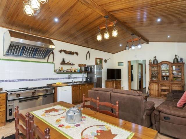 "Rabic", 6 estancias casa de campo 140 m2. Espacioso, con mobiliario funcional y rústico: salón-comedor con mesa de comedor, TV digital y aire acondicionado. 1 dorm. doble con 2 camas de matrimonio (150 cm, 190 cm de longitud). 1 dorm. doble con 1 cama de matrimonio (135 cm, 190 cm de longitud). 1 dorm. doble con 2 camas (90 cm, 190 cm de longitud). Comedor con ducha/WC. Grande cocina abierta en la entrada (2 fogones, horno, lavavajillas, 4 fuegos, tostadora, hervidor de agua eléctrico, microondas, congelador, cafetera eléctrica) con TV digital. Salida a la terraza-jardín, a la piscina. Ducha/WC. Ningún tipo de calefacción. Muebles de terraza, barbacoa, tumbonas (6). Vista al paisaje, a la localidad y al bosque. El alojamiento dispone de: lavadora, plancha, trona, cuna hasta 2 años, secador de pelo. Internet (Wifi, gratis). A tener en cuenta: adecuado para familias. 1 mascota / perro. TV solamente ES. HUTG-69271