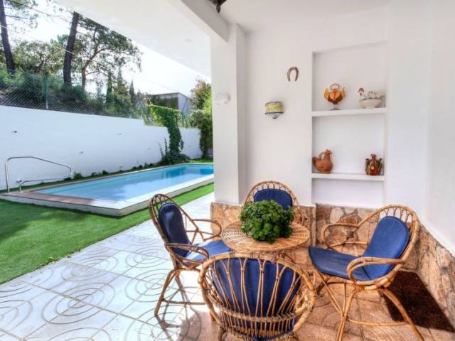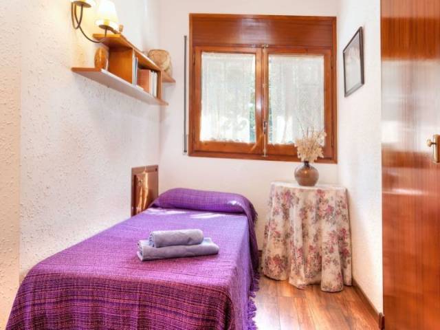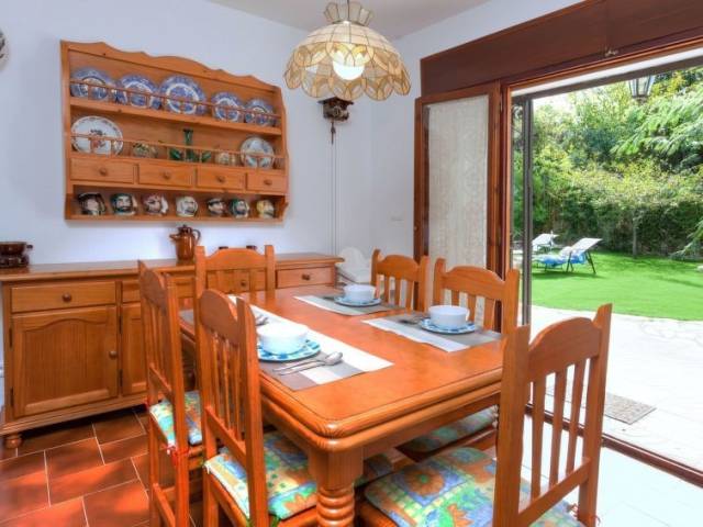 Urb. Puigventós: a 10 km de Playa de Lloret de Mar: Casa en varios niveles "Paradis", amplia, agradable, rústica de 2 plantas, rodeada de árboles. En las afueras de la localidad, a 10 km del centro de Lloret de Mar, en el distrito Urbanizacion Puigventos, lugar tranquilo, soleado, en una calle, orientación sur. Comunitario: piscina vallada (50 - 200 cm de profundidad, Disponible por temporada: 15.May. - 15.Oct.). Tenis (extra), básquet (extra), parque infantil. Privado: jardín 1'200 m2 (vallado) con césped y plantas, piscina rectangular (7 x 3 m, 200 cm de profundidad, Disponible por temporada: 01.May. - 20.Oct.) con escalera interior y sistema de limpieza por electrolysis de sal. Ducha exterior, casita de piscina con nevera, tenis de mesa, terraza-jardín, cenador, porche, muebles de jardín, barbacoa. En el inmueble: sala de juegos. Aparcamiento (para 2 coches) junto a la casa en el mismo terreno. Tienda de comestibles 6.9 km, supermercado 6.9 km, centro comercial 9 km, playa de arena 10 km, piscina 500 m. Tenis 500 m. Atracciones en los alrededores: water world 7.5 km, marineland 17.5 km, gnomo park 10.5 km. Zona de senderismo cami de ronda GR-92 14.4 km. A tener en cuenta: coche recomendable. Adecuado para familias. Grupos de jóvenes sólo bajo petición. Vecindario muy sensible a ruidos. Se ruega respetar la tranquilidad y normas de buen comportamiento.