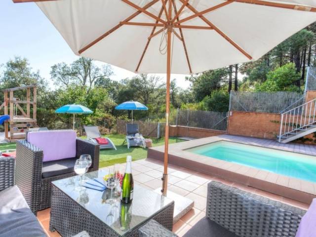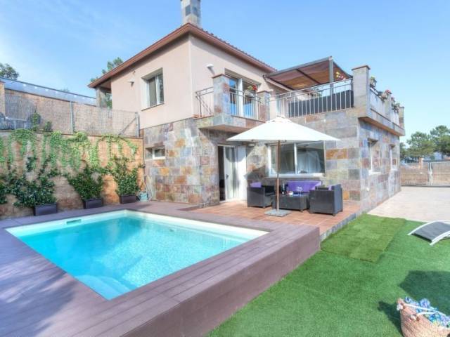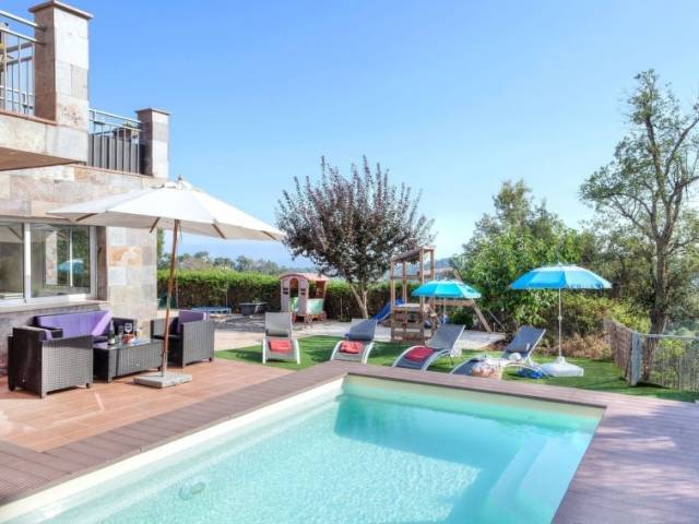 Mont Lloret a 5 km de Lloret de Mar: Casa "Atenea", muy moderna, agradable de 2 plantas. A 10 km del mar, a 10 km de la playa. Privado: jardín (vallado), piscina rectangular (3 x 5 m, Disponible por temporada: 01.Jun. - 17.Oct.). Parque infantil (columpio). Acceso (300 m camino de tierra). Aparcamiento junto a la casa, posibilidad de aparcamiento en la calle. Tienda 5 km, supermercado 7 km, restaurante 2 km, bar 2 km, parada de autobús 400 m, playa de arena 8 km. Campo de golf 9 km. Atracciones en los alrededores: Marineland 19 km, Waterworld 5 km, Gnomopark 9 km. A tener en cuenta: coche recomendable. Adecuado para familias. Grupos de jóvenes sólo bajo petición.