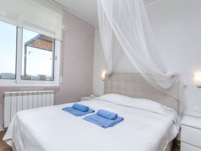 "Atenea", casa 6 estancias 175 m2. Con mobiliario de buen gusto y agradable: comedor con TV y TV digital. Salida a la terraza. 1 dorm. con 2 camas (90 cm, 200 cm de longitud). 1 dorm. doble con 1 cama de matrimonio (150 cm, 200 cm de longitud). Cocina abierta (5 fogones, horno, lavavajillas, microondas, congelador, cafetera eléctrica). Ducha/bidet/WC. Ningún tipo de calefacción. En planta inferior: salón con TV satélite. Salida a la terraza-jardín, a la piscina. 1 dorm. doble con 1 cama de matrimonio (160 cm, 200 cm de longitud). 1 dorm. doble con 2 camas (90 cm, 200 cm de longitud). Baño/WC. Muebles de terraza, barbacoa, tumbonas. Vista panorámica al mar y a las montañas. El alojamiento dispone de: lavadora, secadora, trona, cuna hasta 2 años, secador de pelo. Internet (Wifi, gratis). Plaza de aparcamiento (vallada). A tener en cuenta: adecuado para familias. Casa para no fumadores. Grupos de jóvenes se admiten bajo petición y con deposito en efectivo. HUTG016368