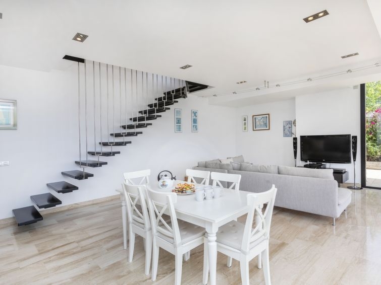 "Bellavista", casa 4 estancias 105 m2 en 2 plantas. Espacioso y luminoso, con mobiliario confortable: salón-comedor con mesa de comedor y TV digital. Salida a la terraza. Cocina (horno, lavavajillas, 3 placas de vitrocerámica, tostadora, hervidor de agua eléctrico, microondas, congelador, cafetera eléctrica, Cápsulas de café (Nespresso) extra). Salida a la terraza-jardín. WC separado. Ningún tipo de calefacción. Planta superior: 1 dorm. con 1 cama doble (150 cm, 190 cm de longitud), baño/bidet/WC. Salida al balcón. 1 dorm. con 1 cama de matrimonio (160 cm, 190 cm de longitud). 1 dorm. con 1 cama-nido (2 x 90 cm, 190 cm de longitud). Baño/bidet/WC. Balcón, 2 terrazas. Muebles de terraza, barbacoa, tumbonas. Vista panorámica al mar y al paisaje. El alojamiento dispone de: lavadora, plancha, trona, cuna hasta 2 años, secador de pelo. Internet (Wifi, gratis). A tener en cuenta: adecuado para familias. TV solamente ES, EN. HUTG-014155