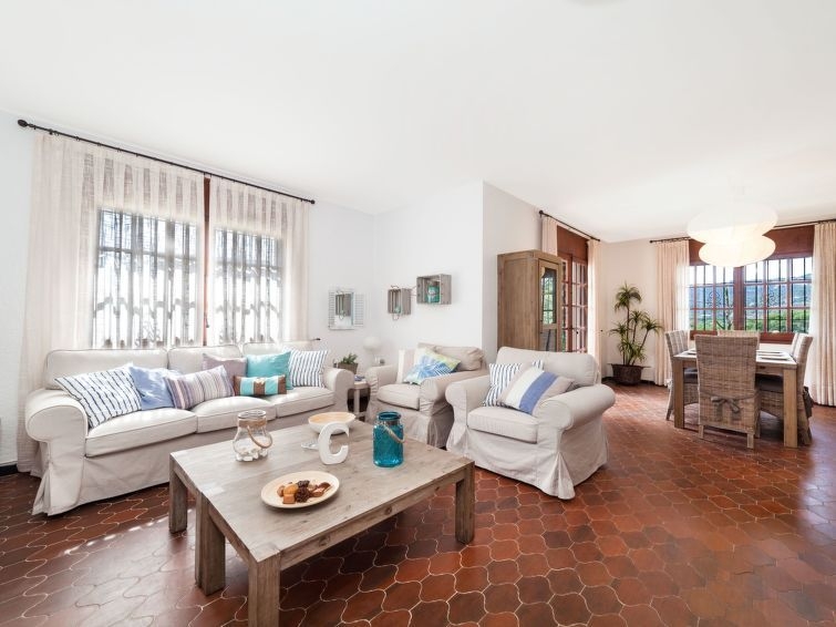 "Gramoia", casa 5 estancias 240 m2 en 2 plantas. Espacioso, con mobiliario bonito y agradable: salón-comedor con TV. 1 dorm. doble con 1 cama de matrimonio (150 cm, 190 cm de longitud). Grande cocina (horno, lavavajillas, tostadora, hervidor de agua eléctrico, microondas, congelador, grill, cafetera eléctrica). Baño/bidet/WC. Ningún tipo de calefacción. Planta superior: 1 dorm. con 2 camas (90 cm, 190 cm de longitud). 1 dorm. con 1 cama de matrimonio (150 cm, 190 cm de longitud). 1 dorm. con 2 camas (90 cm, 190 cm de longitud). Baño/bidet/WC. Muebles de terraza, barbacoa, tumbonas (5). El alojamiento dispone de: lavadora, trona, cuna hasta 2 años. Internet (Wifi, gratis). A tener en cuenta: casa para no fumadores. HUTG026351