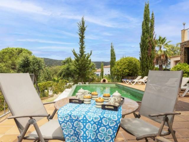 Vizcondado de Cabanyes a 3 km de Calonge: Casa "Can Maggi". A 5 km del mar, en una calle. Privado: jardín en diferentes niveles con césped, piscina rectangular (9 x 5 m, 50 - 175 cm de profundidad, Disponible por temporada: 01.May. - 30.Oct.) con escalera interior. Ducha/WC en zona de piscina, piscina de hidromasaje, terraza, muebles de jardín, barbacoa. Supermercado 2 km, restaurante 100 m, playa de arena "Sant Antoni de Calonge" 5 km. El propietario no acepta grupos de adolescentes/jóvenes. Vecindario muy sensible a ruidos. Se ruega respetar la tranquilidad y normas de buen comportamiento.