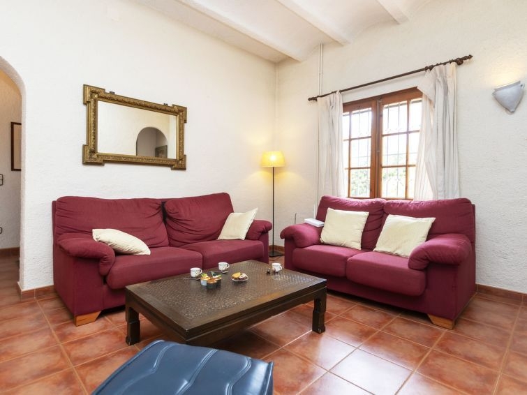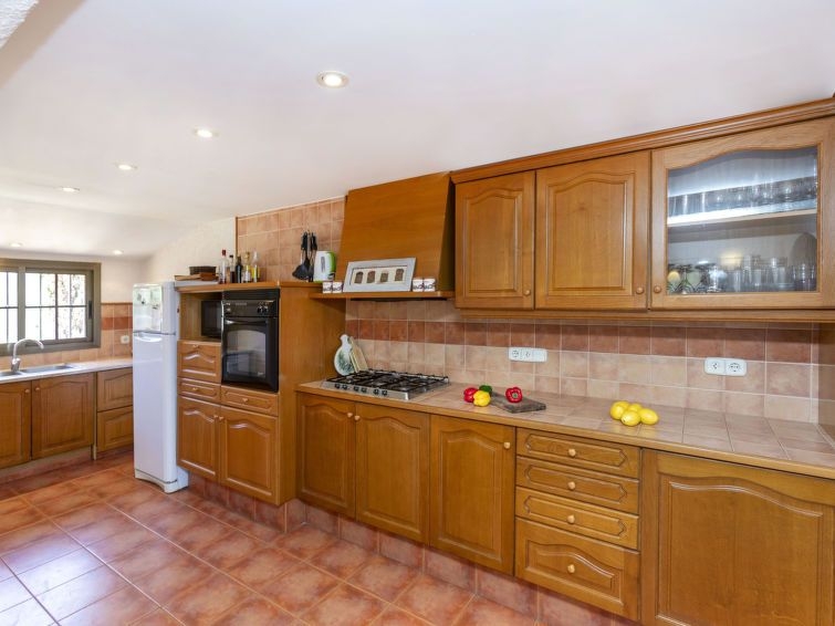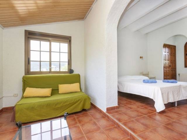 "Can Maggi", villa 4 estancias 167 m2. Con mobiliario funcional: salón-comedor con TV digital. Salida al jardín, a la terraza, a la piscina. 1 dorm. con 1 cama de matrimonio (135 cm, 190 cm de longitud), baño/WC. 1 dorm. con 1 cama de matrimonio (135 cm, 190 cm de longitud). Cocina abierta (lavavajillas, 4 placas de vitrocerámica, tostadora, hervidor de agua eléctrico, microondas, congelador, cafetera eléctrica). WC separado. Ningún tipo de calefacción. Planta superior: 1 dorm. con 1 cama de matrimonio (150 cm, 190 cm de longitud), ducha/WC. Jardín, césped, cenador grande. Muebles de terraza, barbacoa, tumbonas, porche. Vista panorámica a las montañas y al paisaje. El alojamiento dispone de: lavadora, plancha, trona, cuna, secador de pelo. Internet (Wifi, gratis). Plaza de aparcamiento junto a la casa. A tener en cuenta: TV solamente ES. HUTG-001298