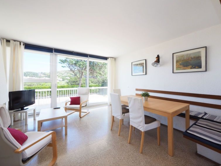 Port de la Selva: Casa de dos viviendas "AGUS", agradable. En las afueras de la localidad, a 500 m del centro, en el distrito Carretera de Selva de Mar, lugar tranquilo, a 400 m del mar. Aparcamiento junto a la casa, garaje individual. Tienda, restaurante, panadería, playa de arena 500 m. Grupos de jóvenes sólo bajo petición. Apartamento de 3 estancias 55 m2 en el 1° piso. Con mobiliario funcional y moderno: salón-comedor 26 m2 con chimenea, TV digital y pantalla plana. Salida a la terraza. 1 dorm. con 2 camas (90 cm, 190 cm de longitud), 1 plegatín. 1 dorm. con 2 camas (90 cm, 190 cm de longitud). Cocina (3 fogones, horno, congelador). Ducha/WC. Terraza 12 m2. Muebles de terraza. Vista al mar, al paisaje y a la localidad. El alojamiento dispone de: lavadora. Plaza de aparcamiento junto a la casa. A tener en cuenta: adecuado para familias. TV solamente ES. HUTG018100