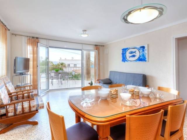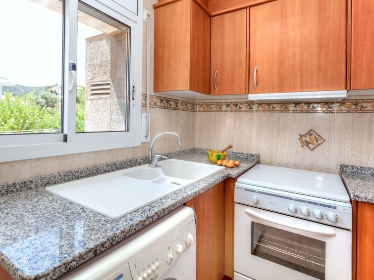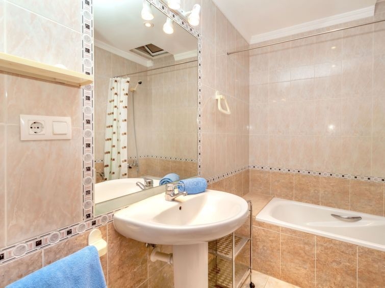 Apartamento de 4 estancias 75 m2 en el 1° piso. Con mobiliario funcional: salón-comedor 22 m2 con TV digital y canales internacionales. Salida a la terraza. 1 dorm. con 1 cama de matrimonio (135 cm). 1 dorm. con 1 x 2 literas (90 cm). 1 dorm. con 2 camas (90 cm). Cocina (4 fogones, horno, microondas, congelador). Ducha/bidet/WC. Ningún tipo de calefacción. Terraza 12 m2. Muebles de terraza. Vista lejana al mar y a las montañas. El alojamiento dispone de: lavadora. Internet (Wifi, gratis). HUTG007564