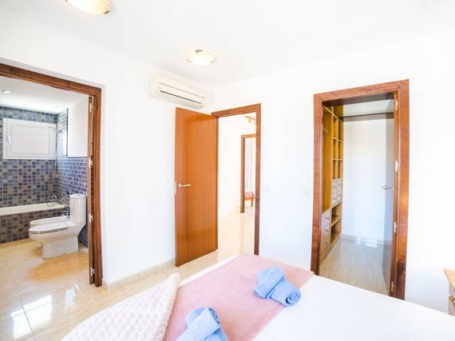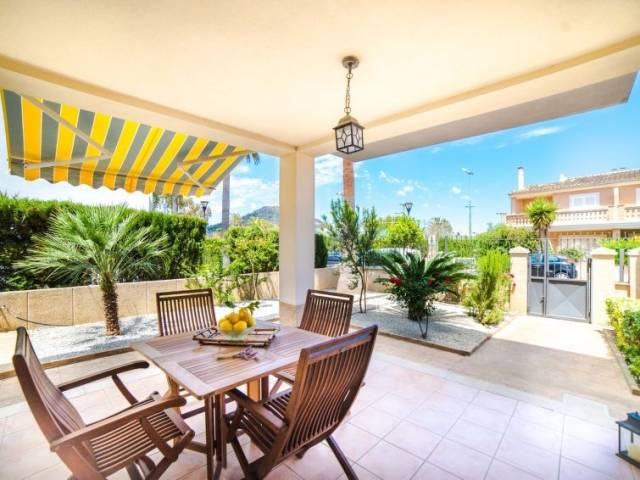 Port Alcúdia: Casa unifamiliar "Les Savines", amplia, muy agradable de 2 plantas, individual del año 2008. En la localidad, a 450 m del centro de Playas de Muro, lugar soleado, a 1.5 km de un bosque, a 200 m del mar, a 90 m de un lago, a 200 m de la playa. Privado: terreno (vallada), jardín con plantas. Terraza-jardín, cenador, porche, muebles de jardín, barbacoa. En el inmueble: acceso a internet, Wifi, aire acondicionado, lavadora, secadora, secadero. Aparcamiento junto a la casa en el mismo terreno. Tienda de comestibles 260 m, supermercado 400 m, restaurante, bar, alquiler de bicicletas 250 m, playa de arena "Port Alcúdia-Playas de Muro" 200 m, playa rocosa "Alcanada" 7 km. Puerto deportivo 4 km, puerto para yates 4 km, campo de golf 7 km, tenis 100 m, centro ecuestre 2 km. Atracciones en los alrededores: Alcudía Old Town (Local Market Sundays), Hidropark Parque Acuático. Playas de Muro, Puerto de Alcúdia. Zona de senderismo Ermita de La Victòria, Puig de Sant Martí. A tener en cuenta: adecuado para familias, adecuado para la tercera edad. Vivienda adecuada para 5 adultos. Carga y descarga de equipaje posible en la casa de vacaciones. "Les Savines", casa 4 estancias 175 m2 en 2 plantas. Vivienda adecuada para 5 adultos. Espacioso y luminoso, con mobiliario funcional y agradable: salón-comedor con ventanal con mesa de comedor, TV, pantalla plana, aire acondicionado y bomba de calor, caliente. Salida a la terraza-jardín. Cocina-comedor (horno, lavavajillas, 3 placas de vitrocerámica, tostadora, hervidor de agua eléctrico, microondas, congelador, cafetera eléctrica) con mesa de comedor. Salida a la terraza-jardín. WC separado. Planta superior: 1 dorm. doble, grande con ventanal Vestidor con 1 cama de matrimonio (150 cm, 190 cm de longitud), baño/bidet/WC, aire acondicionado y bomba de calor, caliente. Salida al balcón. 1 dorm. doble, grande con 1 cama de matrimonio (135 cm, 190 cm de longitud), aire acondicionado y bomba de calor, caliente. 1 dorm. con ventanal con 1 cama (90 cm, 190 cm de longitud). Salida al balcón. Ducha/bidet/WC. 2 balcones, terraza-jardín grande, cenador. Muebles de terraza, barbacoa, porche. El alojamiento dispone de: lavadora, secadora, plancha, trona, cuna, secador de pelo. Internet (Wifi, gratis). Plaza de aparcamiento (cubierto, vallada) junto a la casa. Adecuado para familias. ETV15315