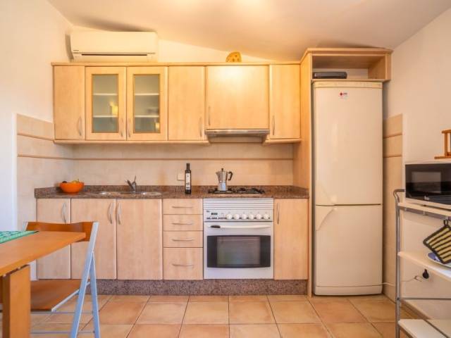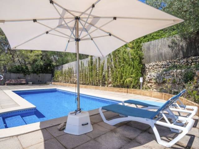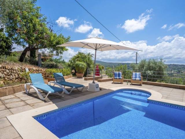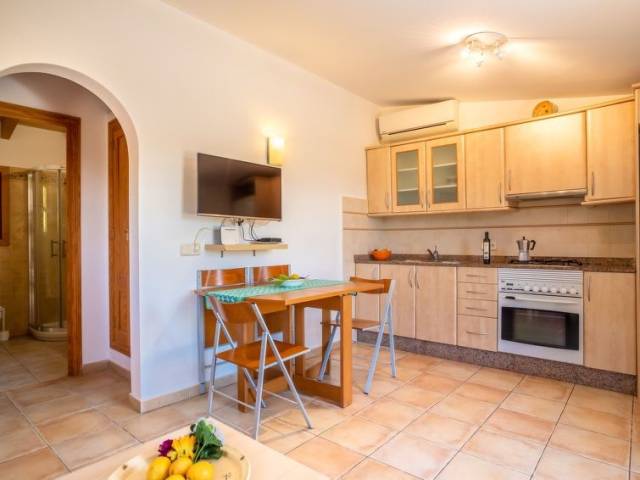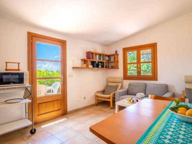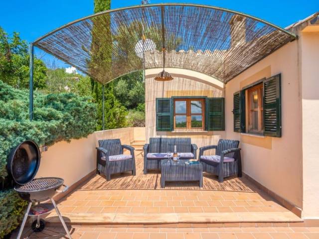 Portol a 4 km de Marratxí: Finca "Can Pere Mas", agradable, sencilla. En las afueras de la localidad, a 3 km del centro de Pòrtol (Marratxí), lugar tranquilo, soleado en una colina, a 500 m de un bosque, a 19 km del mar, a 19 km de la playa, en el campo. Privado: terreno en estado natural (vallada), jardín en diferentes niveles bonito, cuidado con plantas y árboles, piscina rectangular (7 x 4 m, 100 - 200 cm de profundidad, Disponible por temporada: 01.Ene. - 31.Dic.). Ducha exterior, terraza-jardín, cenador, muebles de jardín, barbacoa, mantenimiento de la piscina a través del propietario/jardinero. En el inmueble: acceso a internet, Wifi, sala para guardar bicicleta, aire acondicionado. Acceso empinado, estrecho hasta 200 m de la casa. Aparcamiento junto a la casa en el mismo terreno. Tienda 3 km, tienda de comestibles 2 km, supermercado 3 km, centro comercial 3 km, restaurante 2.5 km, bar 3 km, panadería 3 km, a 26 minutos del centro andando, parada de autobús "Estació de Santa Maria" 4 km, estación de tren "Estació de Santa Maria" 4 km, playa de arena "Platja de Can Pere Antoni" 18.5 km. Puerto deportivo 20 km, campo de golf 9 km, tenis 4 km, polideportivo 4 km, rutas de senderismo desde la casa, caminos para bicicletas 150 m. Atracciones en los alrededores: Msllorca Fashion Outlet - Cinemas, Marratxí, Palma, Santa María, Santa Eugenia. Zona de senderismo Serra de Tramuntana. A tener en cuenta: coche recomendable. Adecuado para la tercera edad. Vivienda adecuada para 2 adultos. Aeropuerto 24 km de la casa. "Can Pere Mas", casa 2 estancias 35 m2, en planta baja elevada. Vivienda adecuada para 2 adultos. Luminoso, con mobiliario funcional: salón-comedor pequeño con mesa de comedor, TV digital, pantalla plana, aire acondicionado y bomba de calor, caliente. Salida a la terraza. 1 dorm. doble con ventanal con 1 cama de matrimonio (150 cm, 200 cm de longitud), aire acondicionado y bomba de calor, caliente. Cocina abierta (3 fogones, horno, tostadora, hervidor de agua eléctrico, microondas, congelador, cafetera eléctrica). Ducha/WC. Terraza-jardín grande, cenador. Muebles de terraza, barbacoa, tumbonas, trastero. Vista panorámica muy bonita al paisaje. El alojamiento dispone de: plancha, trona, cuna hasta 2 años, secador de pelo. Internet (Wifi, gratis). La piscina descrita es de uso privado. ETV5222