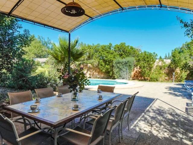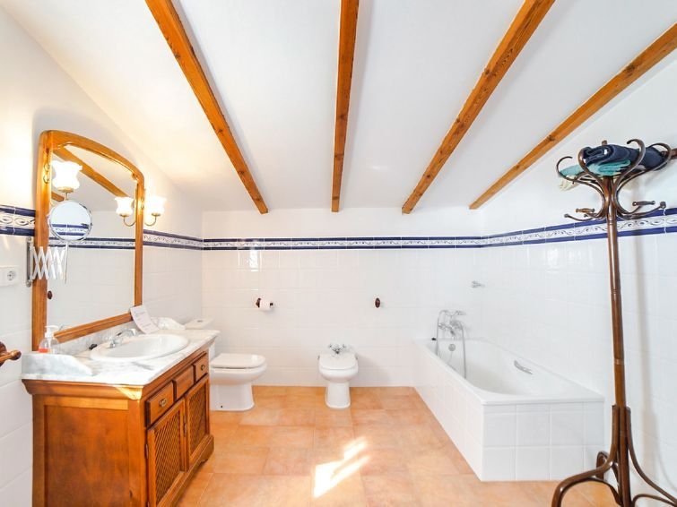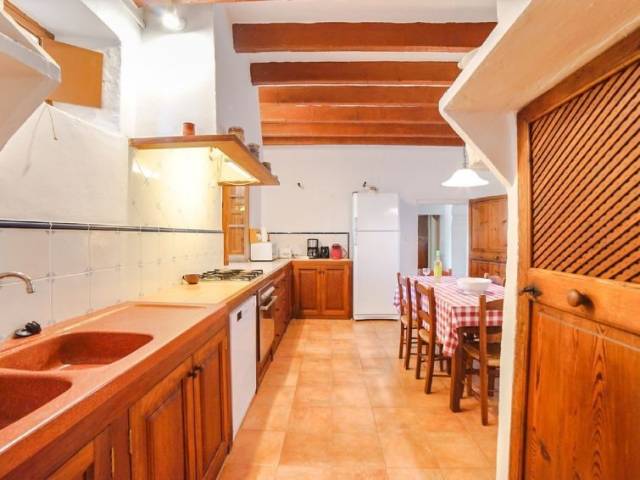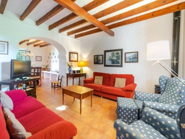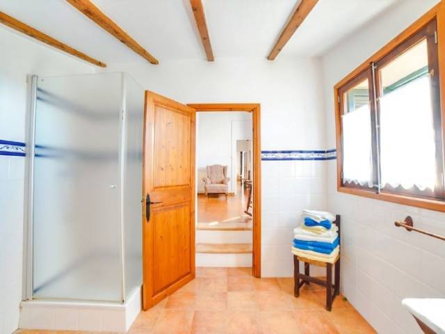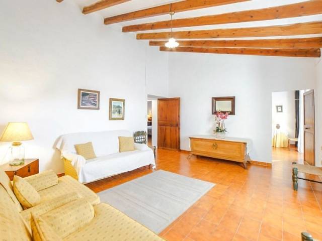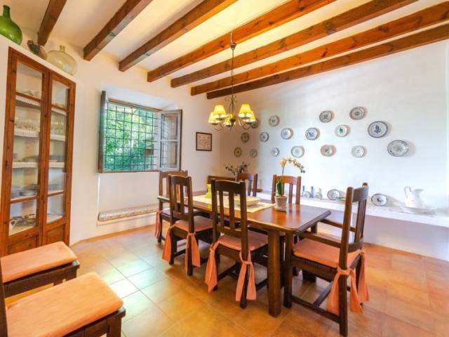 Establiments: Casa señorial "Cas Frare ESB100", muy amplia, muy bonita, rústica de 2 plantas. En la localidad, a 500 m del centro de Establiments, lugar soleado, excelente situación: muy céntrica pero tranquila, a 8 km del mar, a 14 m de la playa. Privado: terreno en estado natural 3'000 m2 (vallada), jardín bonito con plantas y árboles, piscina rectangular (10 x 5 m, 100 - 200 cm de profundidad, Disponible por temporada: 01.Ene. - 31.Dic.) con sistema de limpieza por electrolysis de sal. Ducha exterior, terraza-jardín, cenador, porche, muebles de jardín, barbacoa. En el inmueble: acceso a internet, Wifi, sala para guardar bicicleta, lavadora. Aparcamiento en el mismo terreno. Supermercado 1.6 km, restaurante, bar, bar al aire libre 300 m, estación de tren "Palma" 6 km, playa de arena "Playa de Palma" 14 km. Puerto deportivo 7 km, puerto para yates 7 km, campo de golf 5 km. A tener en cuenta: adecuado para familias, adecuado para la tercera edad. Vivienda adecuada para 8 adultos grupos de jóvenes sólo bajo petición. Carga y descarga de equipaje posible en la casa de vacaciones. Aeropuerto 15 km de la casa.