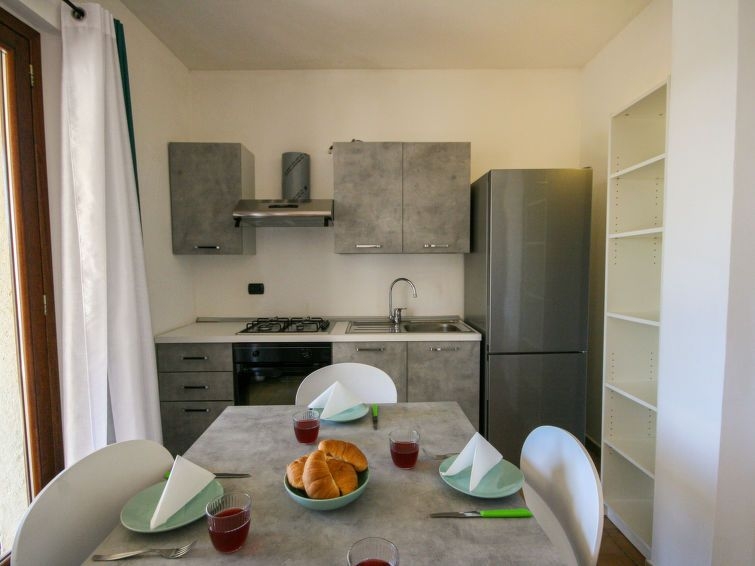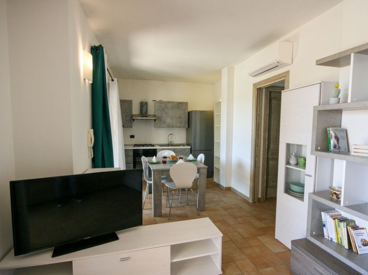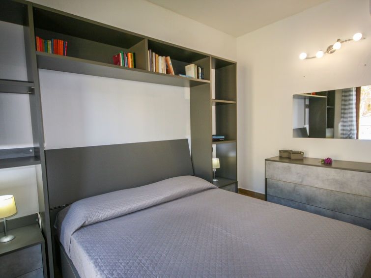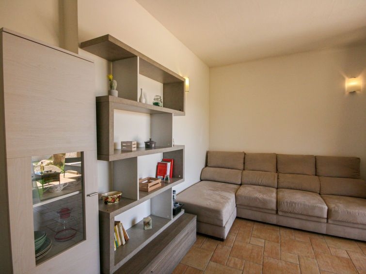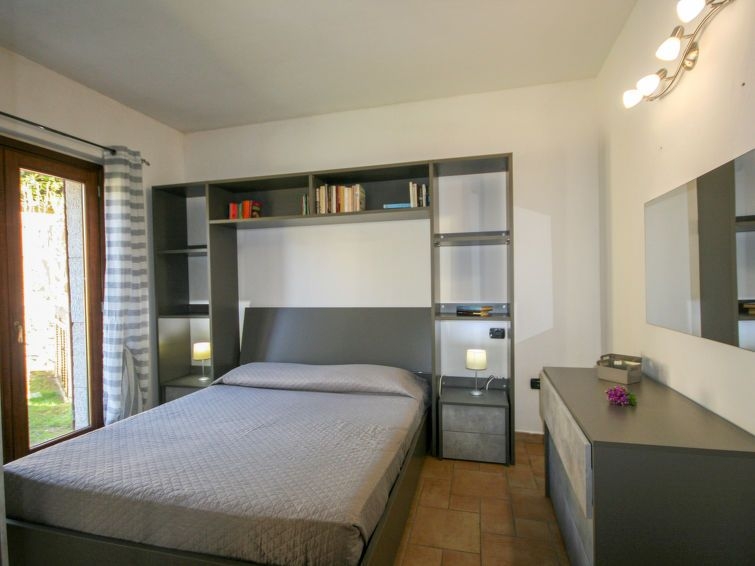 "Li Menduli quattro", apartamento de 2 estancias 55 m2, en la planta baja. Con mobiliario confortable y agradable: salón-comedor con 1 sofá-cama, TV y pantalla plana. Salida al balcón acristalado. 1 dorm. doble. Salida al jardín. Rincón-cocina (horno, 4 fuegos, tostadora, hervidor de agua eléctrico). Ducha/bidet/WC. Aire acondicionado (extra). Terraza cubierta, jardín. Muebles de terraza, tumbonas (2). Vista al jardín. El alojamiento dispone de: lavadora, plancha, secador de pelo. Internet (Wifi, gratis). Plaza de aparcamiento n. 4 a 90 m. A tener en cuenta: casa para no fumadores. IUN:Q6163