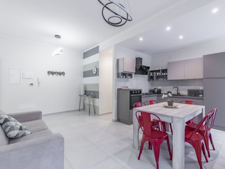 "Calipso", apartamento de 3 estancias 100 m2 en el 1° piso. Con mobiliario confortable y moderno: salón-comedor con 1 sofá-cama doble (160 cm, 200 cm de longitud), TV. Salida al balcón. 1 dorm. doble. 1 dorm. con 3 camas (90 cm, 200 cm de longitud). Rincón-cocina (horno, lavavajillas, 4 placas de vitrocerámica, tostadora, hervidor de agua eléctrico, microondas, cafetera eléctrica). Salida al balcón. 2 ducha/bidet/WC. Aire acondicionado, aire caliente. Calefacción disponible desde el 01.11. al 31.03. Balcón pequeño 6 m2. El alojamiento dispone de: lavadora, trona, cuna, secador de pelo. Internet (Wifi, extra). Garaje (extra). 1 mascota / perro. CITRA:009001-LT-0877