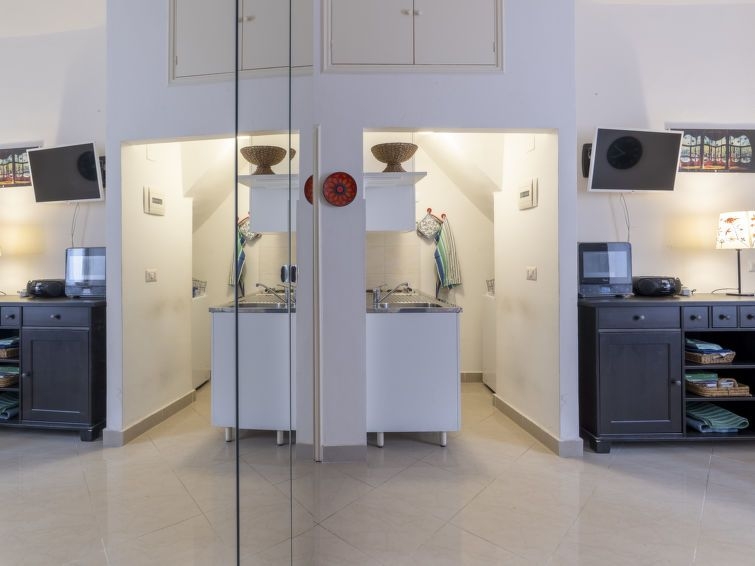 "Mariella" estudio 30 m2 en el 1° piso. Luminoso, con mobiliario funcional y agradable: salón-comedor con 1 sofá-cama (90 cm, 200 cm de longitud), 1 sofá-cama doble (160 cm, 200 cm de longitud). Rincón-cocina (2 fogones, horno pequeño, horno, tostadora, hervidor de agua eléctrico, microondas, cafetera eléctrica). Ducha/bidet/WC. Ningún tipo de calefacción. Vista parcial a la localidad. El alojamiento dispone de: lavadora, secador de pelo. Internet (Wifi, gratis). A tener en cuenta: entrada privada. CITRA:08055-LT-2087