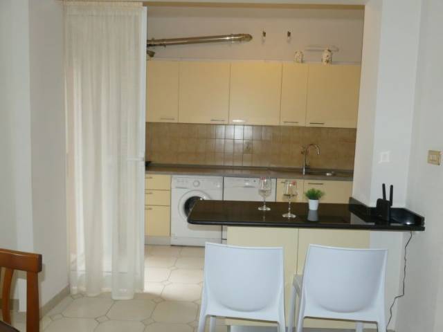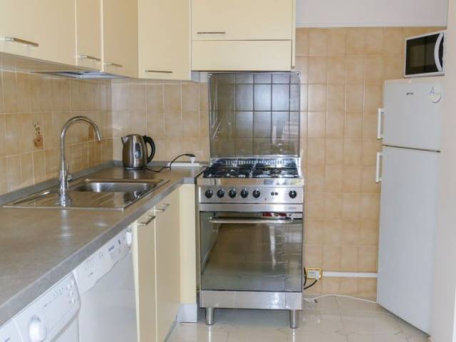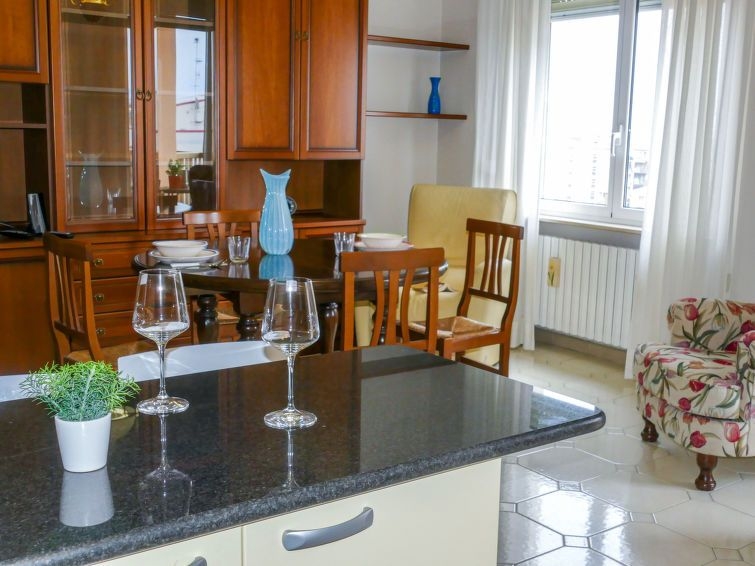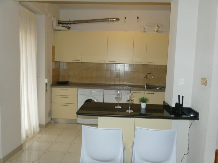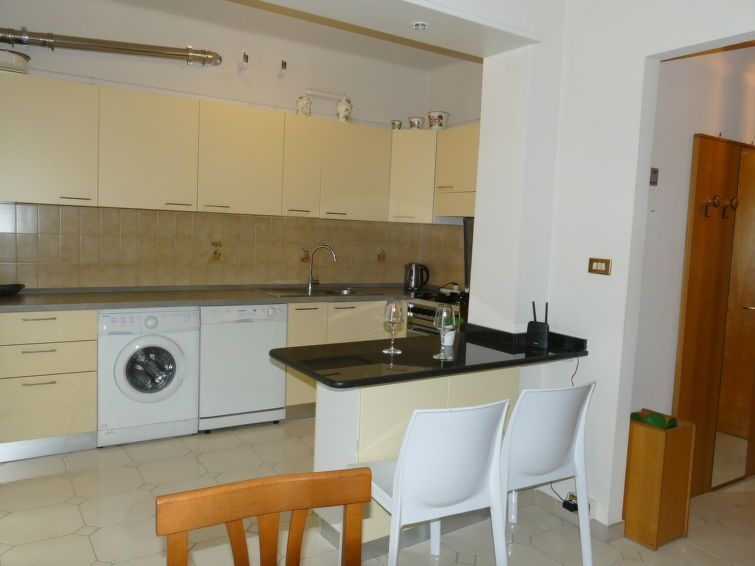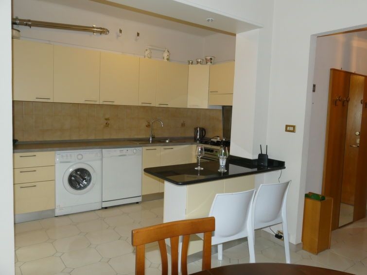 "Eden", apartamento de 2 estancias 60 m2 en el 5° piso. Luminoso, con mobiliario funcional: salón-comedor con TV. Salida al balcón. 1 dorm. doble. Habitación de paso, sin ventanas con 1 cama (90 cm, 200 cm de longitud). Cocina abierta (horno, lavavajillas, 4 fuegos, tostadora, hervidor de agua eléctrico, microondas). Salida al balcón. Baño/bidet/WC. Calefacción de gas. Calefacción disponible desde el 07.11. al 01.04. Balcón pequeño 6 m2. Muebles de balcón. Vista parcial al mar y a la localidad. El alojamiento dispone de: lavadora, secador de pelo. Internet (Wifi, gratis). La ropa de cama, la limpieza final y los gastos de electricidad están incluidos. No hay costos locales adicionales, excepto la tasa local de turismo. CITRA:008063-LT-0097