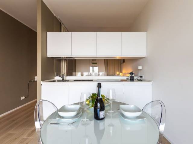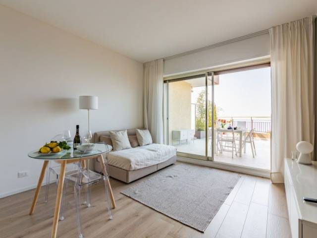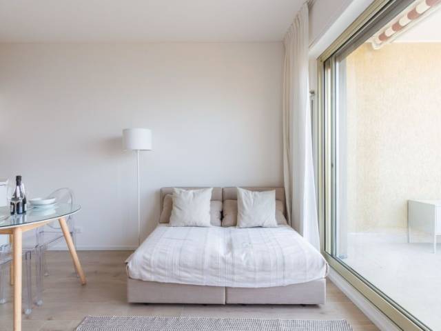 "Calandre Suite" estudio 35 m2. Con mobiliario muy bonito y de buen gusto: salón-dormitorio abierto con ventanal con 1 cama de matrimonio (140 cm, 190 cm de longitud). Salida al balcón. Cocina abierta (4 Placas de inducción, microondas, cafetera eléctrica). Salida al balcón. Ducha/bidet/WC. Calefacción disponible desde el 15.10. al 30.04. Balcón grande 25 m2. Muebles de balcón. Vista panorámica muy bonita al mar. El alojamiento dispone de: lavadora. Internet (Wifi). 008065-LT-0257