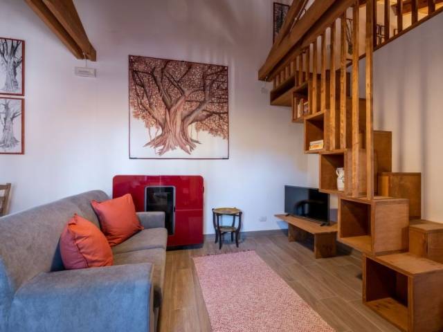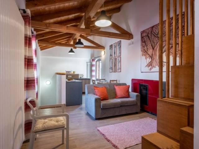 "Il Tiglio", apartamento de 2 estancias 60 m2 en el 1° piso. Con mobiliario confortable y moderno: salón-comedor con TV satélite. Entre planta abuhardillada, abierta, altura de techo 80 - 170 cm con 1 posibilidad para dormir. 1 dorm. doble. Rincón-cocina (lavavajillas, 4 fuegos, microondas, cafetera eléctrica). Ducha/bidet/WC. Calefacción. Calefacción disponible desde el 15.10. al 15.04. El alojamiento dispone de: trona, cuna, secador de pelo. Internet (Wifi, gratis). 1 mascota / perro. CIR:00413000017