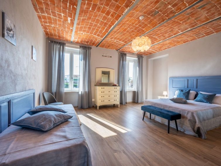 "Il sogno di Elisa", casa pareada 7 estancias 160 m2 en 2 plantas. Con mobiliario confortable y moderno: salón-comedor con mesa de comedor y TV. Salida al jardín. Salón-dormitorio con 1 sofá-cama doble. 1 dorm. doble con 1 cama doble. Rincón-cocina (horno, lavavajillas, 4 Placas de inducción, cafetera eléctrica). Ducha/bidet/WC. Planta superior: (escalera exterior) 2 dorm., cada habitación con 1 sofá-cama doble, mesa de comedor, rincón cocina y TV. Salida al balcón. 2 dorm. dobles, cada habitación con 1 cama doble. 2 ducha/bidet/WC. Calefacción, calefacción de gas. Calefacción disponible desde el 01.10. al 30.04. Balcón pequeño. Muebles de terraza, barbacoa, tumbonas. Vista panorámica a la localidad. El alojamiento dispone de: secador de pelo. Internet (Wifi, gratis). Adecuado para familias. 1 mascota / perro. No hay conexión interna entre las diferentes unidades. CIR:00501500013 - 00501500011 - 00501500010