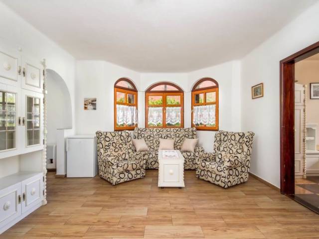 Casa 6 estancias 100 m2. Con mobiliario confortable: salón-comedor con 1 sofá-cama y TV satélite. Salida a la terraza. 1 dorm. con 1 cama de matrimonio. 1 dorm. con 2 camas. Pequeña cocina). Ducha/WC. Calefacción. Planta superior: salón-comedor con 1 sofá-cama y TV satélite. 1 dorm. con 1 cama de matrimonio. Salida al balcón. 1 dorm. con 2 camas. Salida al balcón. Cocina abierta (4 fogones, microondas). Ducha/WC. Terraza-jardín. Muebles de terraza, muebles de balcón, barbacoa, tumbonas (4). Plaza de aparcamiento (2 Coches). MA20010799