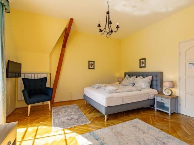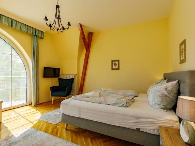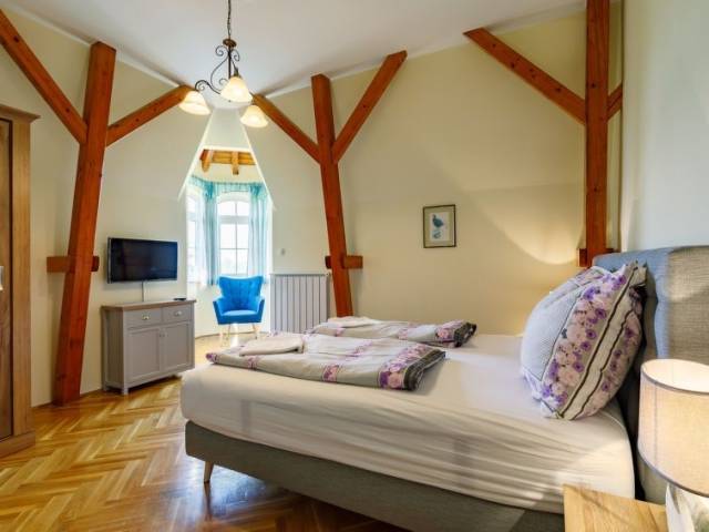 Fonyód: Castillo "Zichy", bonito, histórico de 3 plantas. En la periferia, lugar aislado, tranquilo, soleado, a 3.2 km de un lago, en el campo. Privado: terreno 6 ha, jardín 3'000 m2, piscina rectangular (75 m2, 150 cm de profundidad, Disponible por temporada: 20.May. - 20.Sep.) con escalera interior. Barbacoa, lugar para hoguera, parque infantil (tobogán, columpio, cajón de arena). En el inmueble: sala de desayuno, Wifi. Tienda de comestibles 800 m, supermercado 3.1 km, restaurante 1.6 km, playa de césped 3.2 km, piscina termal "Csisztapuszta" 4.3 km. Centro ecuestre 3 km. A tener en cuenta: el propietario vive en el mismo terreno.