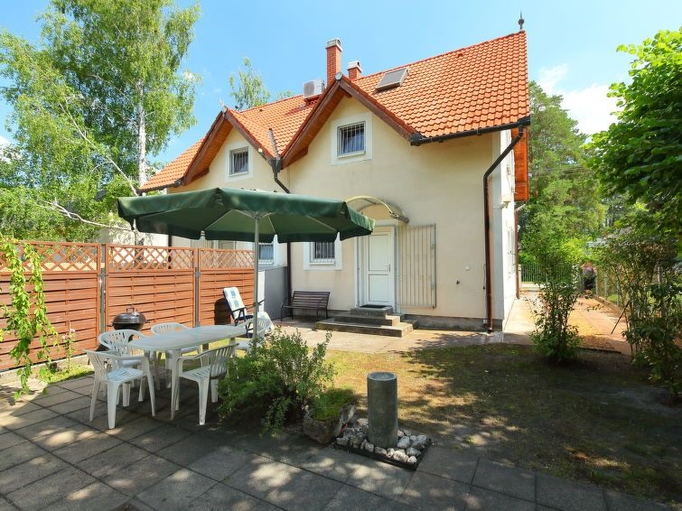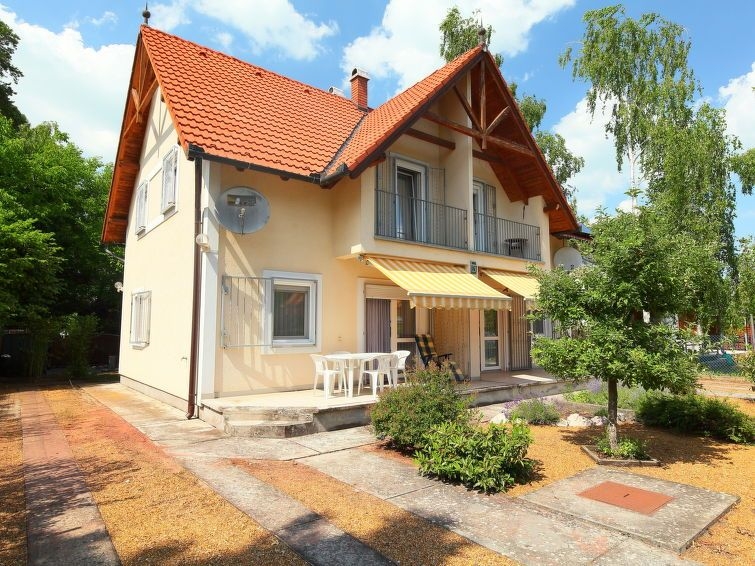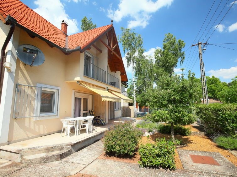 Fonyód: Casa semiadosada "Freesia", agradable de 2 plantas. En la localidad, a 100 m de un lago. Privado: jardín 200 m2. Terraza-jardín. En el inmueble: Wifi, lavadora. Tienda de comestibles 500 m, restaurante 200 m, playa de césped 100 m.
