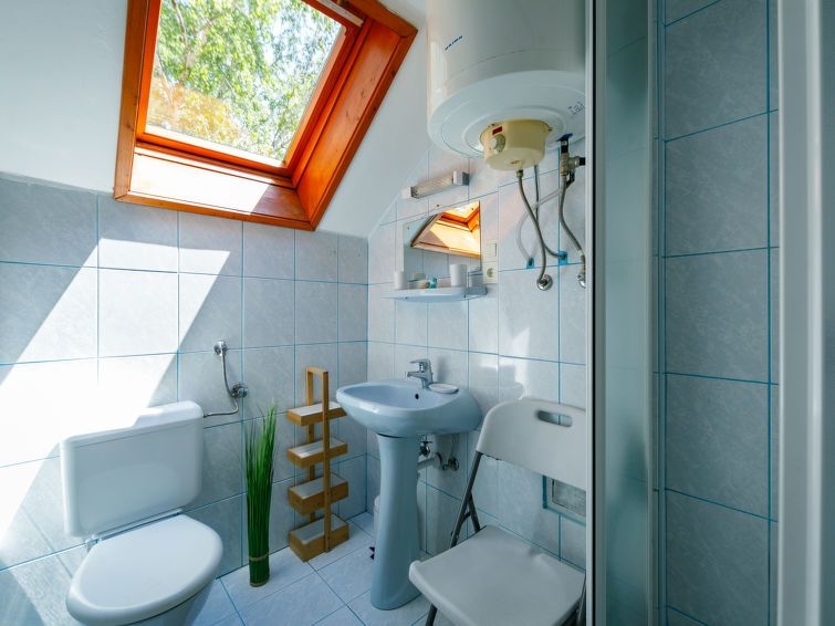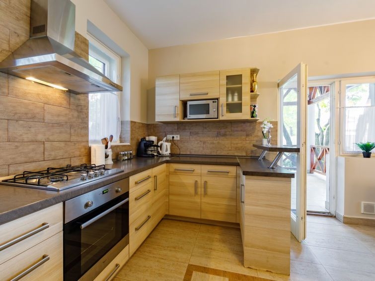 Balatonboglár: Casa de dos viviendas "Marian", idónea para niños, agradable de 2 plantas. En la localidad, a 50 m de un lago. Privado: terreno 700 m2 (vallada), jardín, cuidado. Terraza-jardín (tobogán, columpio, cajón de arena). En el inmueble: Wifi, futbolín, aire acondicionado, lavadora. Tienda de comestibles 600 m, restaurante 150 m, estación de tren 300 m, playa de césped 100 m. Tenis 700 m.