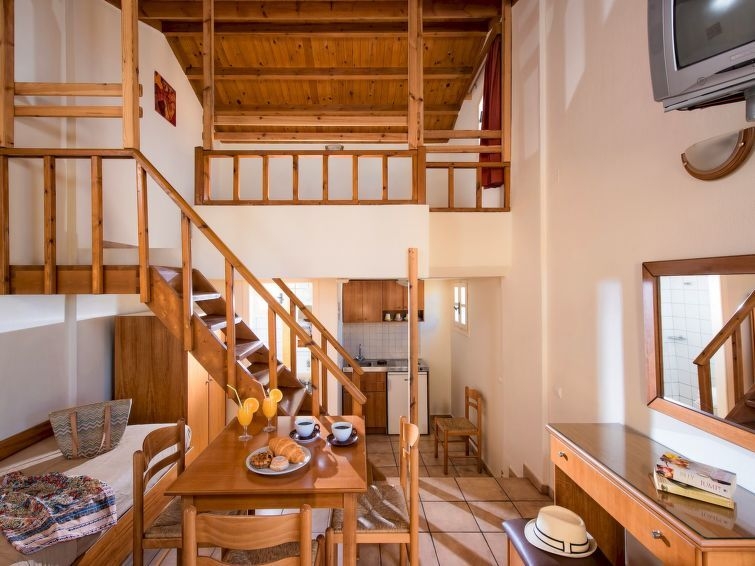 "Maisonette", apartamento de 2 estancias 32 m2 en 2 plantas. Espacioso y luminoso, con mobiliario confortable y bonito: salón-dormitorio abierto con 1 cama. Salida al balcón. Entre planta abierta con 1 cama doble. Cocina abierta (2 fogones, tostadora, hervidor de agua eléctrico) con pequena mesa de comedor. Ducha/WC. Aire acondicionado. Balcón. Vista bonita a las montañas. El alojamiento dispone de: caja fuerte, plancha, secador de pelo. Internet (Wifi, gratis). A tener en cuenta: casa para no fumadores. EL1320-12-2745