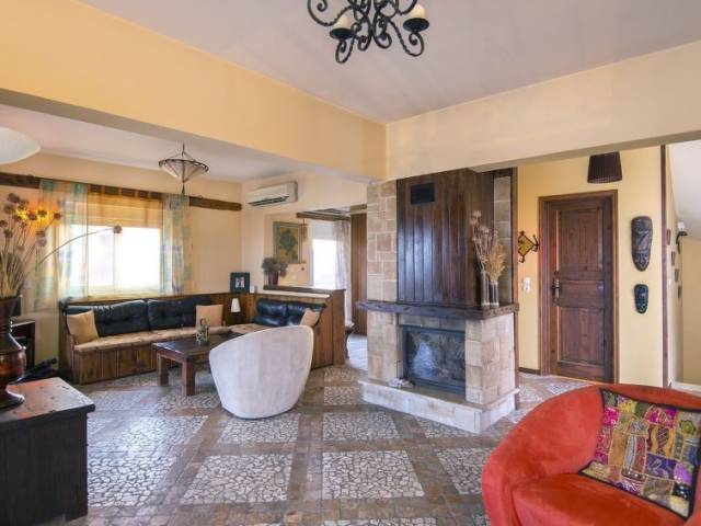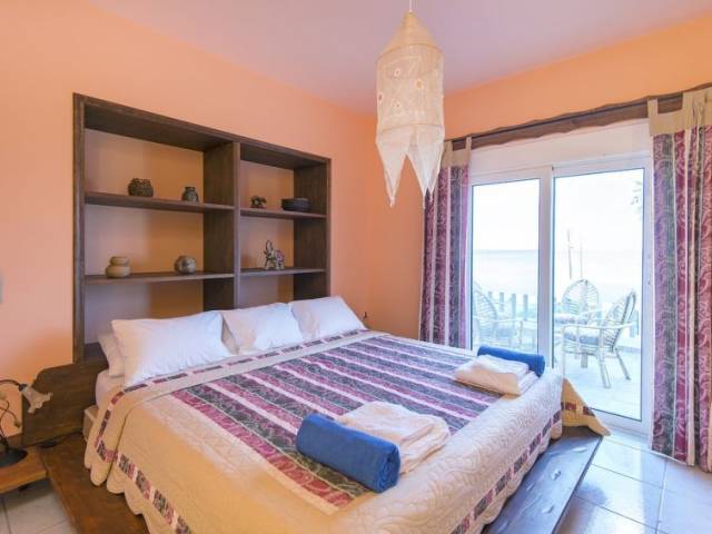 "Villa Alkyoni", villa 6 estancias 210 m2 en 3 plantas. Espacioso y luminoso, con mobiliario confortable y moderno: salón-comedor 40 m2, grande con chimenea y TV satélite (pantalla plana), aire acondicionado. Salida al jardín, a la terraza. Cocina abierta (horno, lavavajillas, 4 placas de vitrocerámica, microondas, congelador, cafetera eléctrica) con mesa de comedor, aire acondicionado. WC separado. Aire acondicionado. En planta inferior: (escaleras sin barandilla) salón con 1 sofá-cama doble, biblioteca y TV (pantalla plana), DVD y aire acondicionado. 1 dorm. con 2 camas y aire acondicionado. Ducha/WC. Planta superior: (escaleras sin barandilla) 3 dorm., cada habitación con 1 cama doble y aire acondicionado. Salida al balcón. Baño/WC. 3 balcones, terraza grande. Barbacoa, tumbonas. Vista panorámica bonita al mar. El alojamiento dispone de: lavadora, caja fuerte, plancha, secador de pelo. Internet (Wifi, gratis). A tener en cuenta: adecuado para familias. Extintores. 1476K10000394601