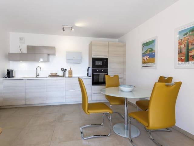 Bormes Les Mimosas a 2 km de Le Lavandou: Residencia "Le Clos Jardin", muy bonita de 3 plantas del año 2021. En la localidad, a 600 m del centro de Pin de Bormes, a 2.7 km del mar, a 2.7 km de la playa. Comunitario: jardín, cuidado, piscina rectangular vallada (5 x 15 m, 85 - 150 cm de profundidad, Disponible por temporada: 15.May. - 30.Sep.) con escalera interior. En el complejo: sala para guardar bicicleta. Tienda 600 m, tienda de comestibles, supermercado, restaurante 500 m, bar, panadería 400 m, café 500 m, alquiler de bicicletas 2 km, a 10 minutos del centro andando, parada de autobús "Pin de Bormes" 50 m, estación de tren "Hyères" 18 km, playa de arena "Lavandou" 2.7 km. Puerto deportivo 3 km, campo de golf (18 hoyos) 14 km, escuela de vela 3 km, tenis 4 km, minigolf 3 km, caminos para bicicletas 50 m, parque infantil 600 m. Atracciones en los alrededores: Magic World 20 km, Parc Olbius Riquier 16 km. Zona de senderismo Sentier du littoral. La entrega de llaves se realiza por la agencia Interhome en Le Lavandou, 2 km.