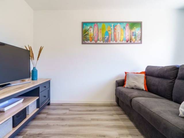 Apartamento de 2 estancias 42 m2, en la planta baja. Espacioso, con mobiliario bonito y moderno: salón-comedor con TV (pantalla plana). Salida a la terraza. 1 dorm. con 1 cama de matrimonio (140 cm, 190 cm de longitud). Salida a la terraza. Cocina abierta (horno, lavavajillas, 3 Placas de inducción, tostadora, hervidor de agua eléctrico, cafetera eléctrica, Cápsulas de café (Nespresso) extra, microondas/grill). Ducha, WC separado. Calefacción eléctrica. Terraza grande 45 m2, orientación sur y orientación este. Muebles de terraza. El alojamiento dispone de: lavadora, plancha, secador de pelo. Internet (Wifi, gratis). Plaza de aparcamiento n. 58 (1 coche). A tener en cuenta: detector de humo. Oferta de un particular según el art. 155, IV del CGI. 6412500199439