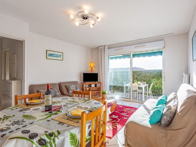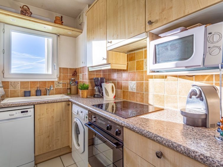 Apartamento de 2 estancias 48 m2, en la planta baja, orientación sur. Con mobiliario funcional y bonito: salón-comedor con TV (pantalla plana), equipo de música. Salida a la terraza, orientación sur. 1 dorm. con 1 cama de matrimonio (140 cm, 190 cm de longitud). Salida a la terraza. Cocina (horno, lavavajillas, 2 placas de vitrocerámica, 2 Placas de inducción, tostadora, hervidor de agua eléctrico, cafetera eléctrica, microondas/grill). Ducha, WC separado. Calefacción eléctrica. Terraza 20 m2, orientación sur. Muebles de terraza, tumbonas (2). Vista a las montañas. El alojamiento dispone de: lavadora, plancha, secador de pelo. Internet (Wifi, extra). Plaza de aparcamiento n. 10. A tener en cuenta: detector de humo. 64125001474A7