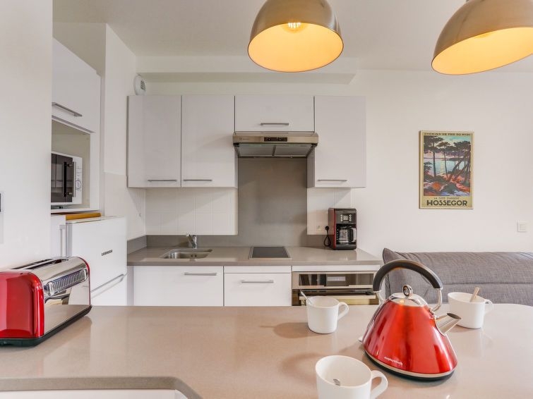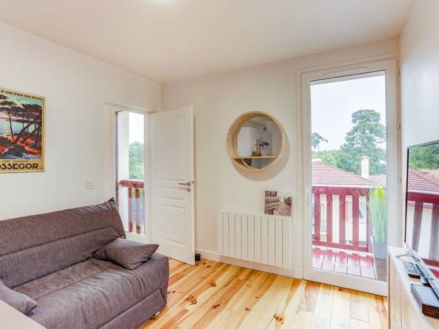 Hossegor: Residencia "la Pergola" del año 2018. En el centro de Hossegor, lugar céntrico, excelente situación: muy céntrica pero tranquila, a 1 km del mar, a 50 m de un lago, orientación este. Aparcamiento. Tienda, tienda de comestibles 50 m, supermercado 1 km, restaurante, bar, panadería, café, alquiler de bicicletas 50 m, playa de arena 1 km. Campo de golf (18 hoyos) 1 km. Grupos de jóvenes sólo bajo petición. Apartamento de 2 estancias 30 m2 en el 2° piso. Con mobiliario confortable y bonito: salón-comedor con 1 sofá-cama (120 cm, 190 cm de longitud), TV (pantalla plana). Salida al balcón. 1 dorm. con 1 cama de matrimonio (140 cm, 190 cm de longitud), ducha/WC. Cocina abierta (2 fogones, horno, lavavajillas, microondas, cafetera eléctrica). Calefacción eléctrica. El alojamiento dispone de: lavadora. Internet (Wifi, gratis). Plaza de aparcamiento. A tener en cuenta: adecuado para familias. Apartamento para no fumadores. Detector de humo. 403040001016D