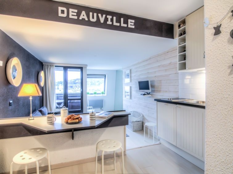 Deauville: Residencia "Les Marinas". En el barrio de Port Deauville, a 800 m del centro, a 500 m del mar, a 500 m de la playa. En el complejo: ascensor. (20 escalones). Posibilidad de aparcamiento en la calle. Tienda, tienda de comestibles 650 m, supermercado 950 m, restaurante 650 m, parada de autobús 400 m, estación de tren "Deauville-Trouville" 1.2 km, piscina cubierta 1.1 km, piscina termal "Deauville" 1.1 km. Campo de golf 4.1 km, tenis, centro ecuestre 750 m. Atracciones en los alrededores: Centre International Deauville - CID 900 m, Hippodrome Deauville-La Touques 1.3 km, Mémorial de Caen 55 km, Plage du débarquement d'Arromanches 87 km. A tener en cuenta: Se pueden reservar alojamientos adicionales.