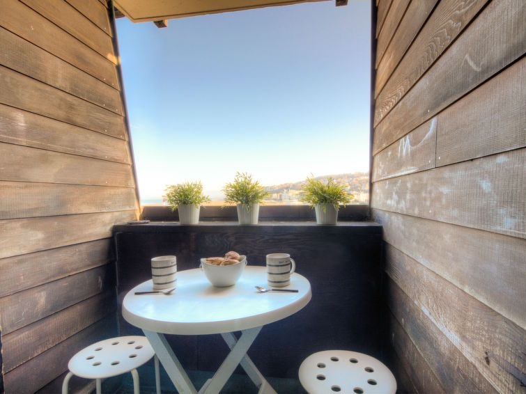 Estudio 25 m2 en el 5° piso, orientación este. Con mobiliario moderno: entrada con 1 x 2 literas (80 cm, 180 cm de longitud). Salón-comedor con 1 sofá-cama doble (1 x 140 cm, 190 cm de longitud), TV (pantalla plana), DVD. Salida al balcón. Rincón-cocina (lavavajillas, 2 placas de vitrocerámica, tostadora, hervidor de agua eléctrico, cafetera eléctrica, microondas/grill). Baño/WC. Calefacción eléctrica. Balcón pequeño 2 m2. Muebles de balcón. Vista bonita al mar y a la localidad. El alojamiento dispone de: Internet (Wifi, gratis). A tener en cuenta: detector de humo. 14220 000121 J6