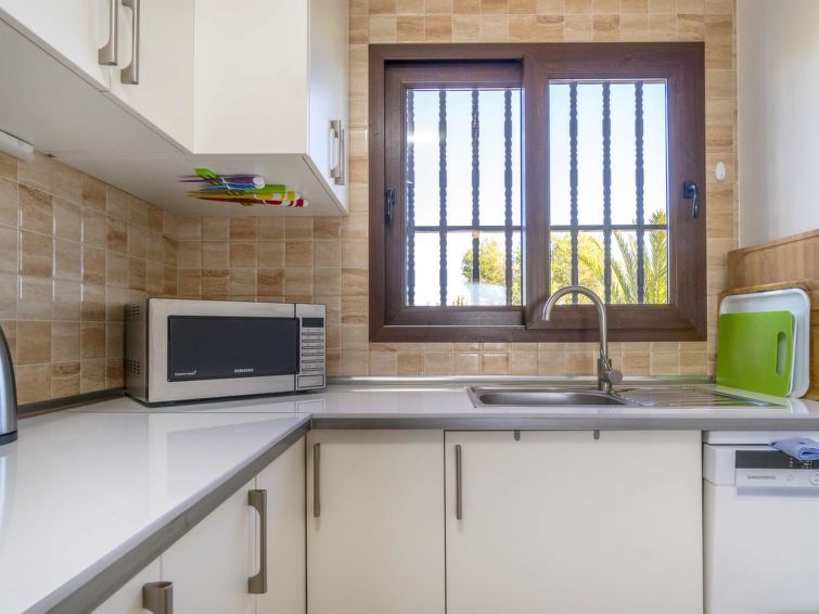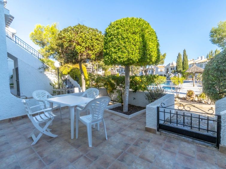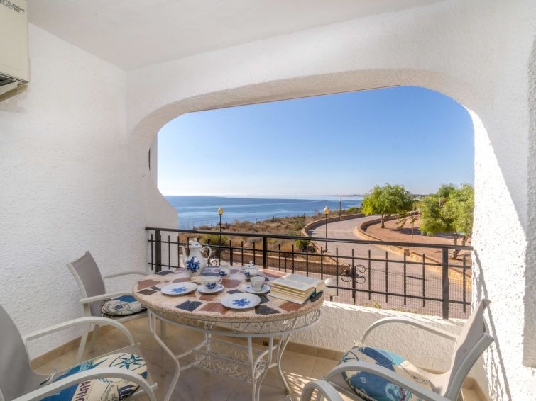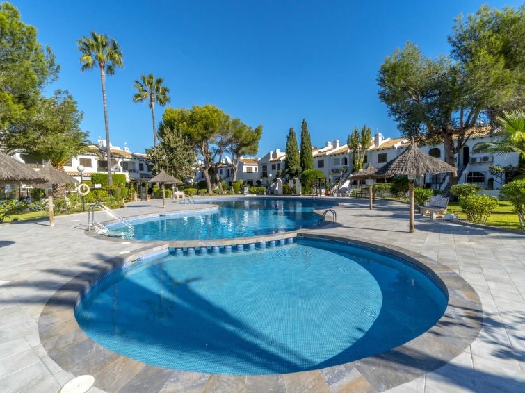 Residencia "Bellavista I", confortable. En la localidad Cabo Roig, lugar tranquilo, soleado, a orillas del mar, en primera linea de playa, acceso directo a la playa. Comunitario: jardín, piscina en forma de riñon (26 x 11 m, 50 - 190 cm de profundidad, Disponible por temporada: 01.Ene. - 31.Dic. horario piscina: 08:00-22:00). Piscina para niños. Acceso por escaleras (10 escalones) hasta la casa. Aparcamiento junto a la casa. Supermercado 300 m, restaurante, bar, panadería, café 400 m, zona peatonal 20 m. Campo de golf (18 hoyos) 5 km, caminos para bicicletas 20 m, parque infantil 100 m.