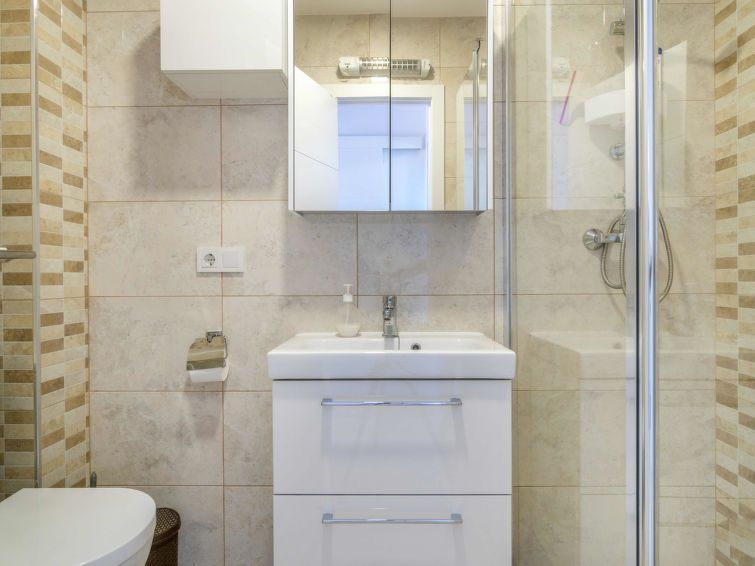 Apartamento de 3 estancias 55 m2 en el 1° piso. Luminoso, con mobiliario confortable: salón-comedor con mesa de comedor, canales internacionales, pantalla plana, aire acondicionado y bomba de calor, caliente. Salida a la terraza. 1 dorm. con 1 cama de matrimonio (150 cm, 190 cm de longitud). 1 dorm. con 1 cama (90 cm, 190 cm de longitud). Cocina abierta (horno, lavavajillas, 4 placas de vitrocerámica, hervidor de agua eléctrico, microondas, congelador, cafetera eléctrica). Ducha/WC. Calefacción eléctrica, aire caliente. 2 terrazas. Muebles de terraza. Vista bonita al mar. El alojamiento dispone de: lavadora, secadora, plancha, secador de pelo. Internet (Wifi, gratis). Plaza de aparcamiento. A tener en cuenta: adecuado para familias. Apartamento para no fumadores. Entrada privada, detector de humo. SES55730