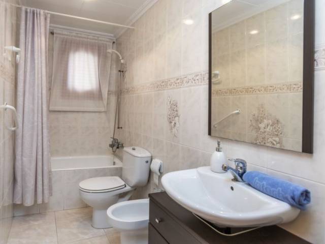 "Castell", casa 7 estancias 150 m2 en 3 plantas. Espacioso, con mobiliario funcional y confortable: planta superior: salón-comedor con TV digital. Cocina (4 fogones, horno, lavavajillas, tostadora, microondas, cafetera eléctrica, Cápsulas de café (ESPRESSO) extra). Ducha/WC. Calentador (80 litros). Planta superior 2: 2 dorm., cada habitación con 2 camas (90 cm, 190 cm de longitud). 1 dorm. con 1 cama de matrimonio (135 cm, 190 cm de longitud). Ducha/WC. Planta superior 3: 2 dorm., cada habitación con 2 camas (90 cm, 190 cm de longitud). 1 dorm. con 1 cama de matrimonio (135 cm, 190 cm de longitud). Ducha/WC. Calefacción eléctrica. Terraza grande. Muebles de terraza. Vista al mar. El alojamiento dispone de: lavadora, secadora, plancha, secador de pelo. Internet (Wifi, gratis). A tener en cuenta: TV solamente ES. Sin ascensor. VT-40994-CS