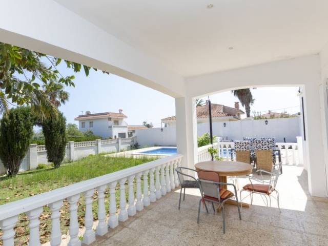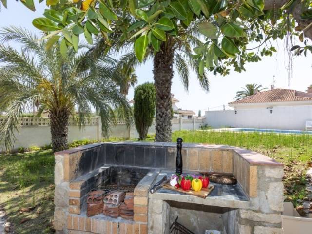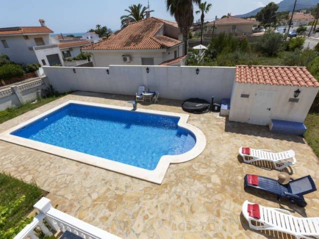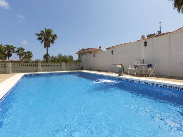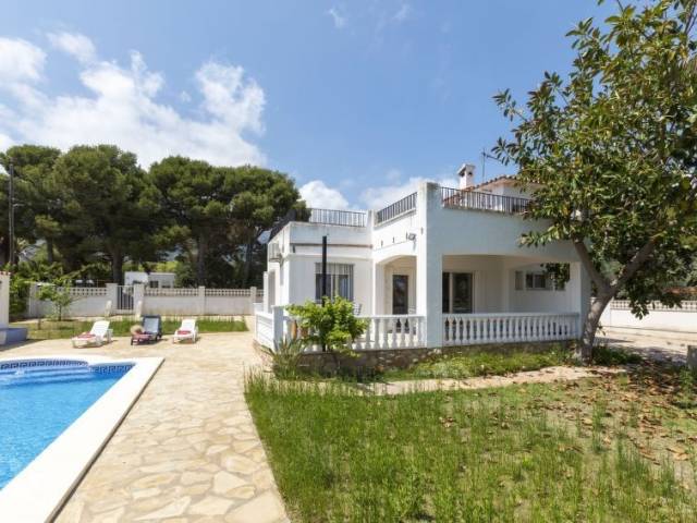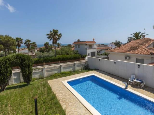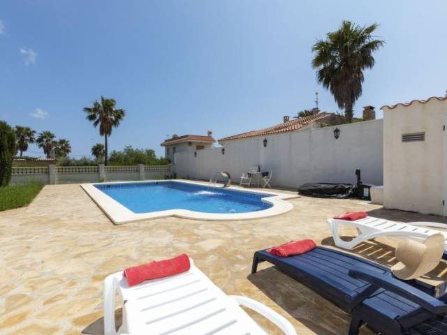 Alcanar Playa a 5 km de La Rapita: Villa "Mar y montaña", amplia, agradable de 2 plantas, individual. A 250 m del mar. Privado: jardín grande 400 m2 (vallado), piscina rectangular (9 x 5 m, 100 - 180 cm de profundidad, Disponible por temporada: 01.Abr. - 15.Oct.). Ducha exterior, barbacoa. En el inmueble: aire acondicionado, lavadora. Aparcamiento (para 2 coches). Tienda 4 km, supermercado 4 km, restaurante 400 m, bar 200 m, panadería 4 km, café 200 m, playa rocosa "Sota MOntsia" 400 m. Puerto deportivo 5 km, campo de golf (18 hoyos) 30 km. Atracciones en los alrededores: Laberinto mas grande de España 40 km, Peñiscola 40 km, Delta del Ebro 12 km, Port Aventura 125 km. Zona de senderismo La Foradada del Montsia 10 km. A tener en cuenta: sin ascensor.
