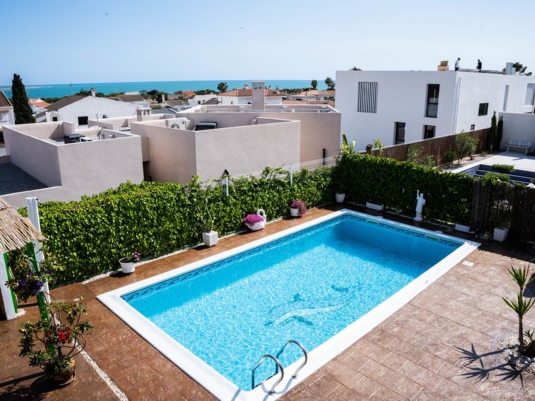 Alcanar: Casa "Mestral", de 2 plantas del año 2004. En las afueras de la localidad, a 2 km del centro de St.Carles de la Ràpita, a 1.5 km del mar. Privado: terreno 451 m2 (vallada), piscina rectangular (4 x 8 m, 150 - 200 cm de profundidad, Disponible por temporada: 01.May. - 01.Nov.) con sistema de limpieza por electrolysis de sal. Ducha exterior. En el inmueble: Wifi. Aparcamiento (para 2 coches). Supermercado 1.5 km, restaurante 100 m, parada de autobús 800 m, playa de arena 1.5 km playa de gravilla 300 m. Campo de golf 16 km, escuela de surf 3 km, tenis 100 m. Atracciones en los alrededores: Parque Natural del Delta del Ebro 11 km, Peñíscola 20 km. El propietario no acepta grupos de adolescentes/jóvenes. La ducha exterior tiene el agua caliente y fría. Casa 5 estancias 143 m2. Con mobiliario confortable: salón-comedor 25 m2 con mesa de comedor, TV satélite, TV digital y pantalla plana. Salida a la piscina. 1 dorm. con 2 camas (90 cm, 180 cm de longitud). 1 dorm. con 1 cama de matrimonio (135 cm, 190 cm de longitud). Cocina abierta (4 fogones, horno, lavavajillas, microondas, congelador, cafetera eléctrica). Ducha/WC. Ningún tipo de calefacción. Planta superior: 1 dorm. con 1 cama de matrimonio (135 cm, 190 cm de longitud). Salida a la terraza. 1 dorm. con 1 cama (90 cm, 190 cm de longitud), 1 x 2 literas (90 cm, 190 cm de longitud). Baño/bidet/WC. Terraza 8 m2, cenador 10 m2. Muebles de terraza, barbacoa, tumbonas (5). Vista lejana al mar y a las montañas. El alojamiento dispone de: lavadora, plancha, mosquitera. Internet (Wifi, gratis). Plaza de aparcamiento (vallada, 2 Coches). Acceso a la planta superior por 16 escalones. En la cocina hay dos neveras. Las 4 habitaciones y el salón-comedor tienen ventiladores en el techo. HUTTE001267